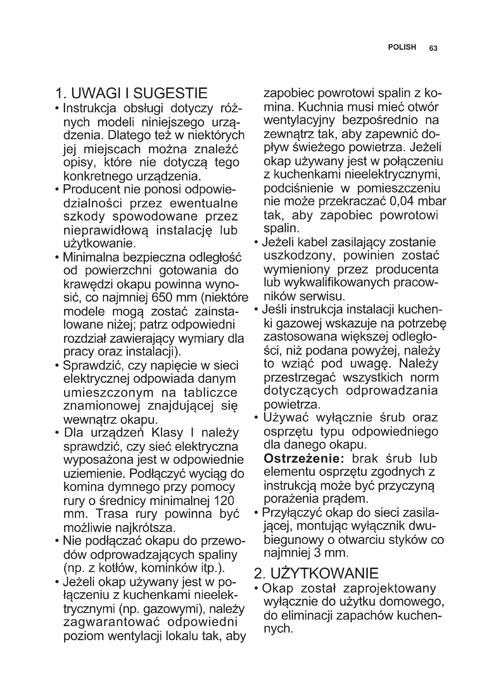 - Nie wolno nigdy używać okapu do celów innych niż te, do których został zaprojektowany.