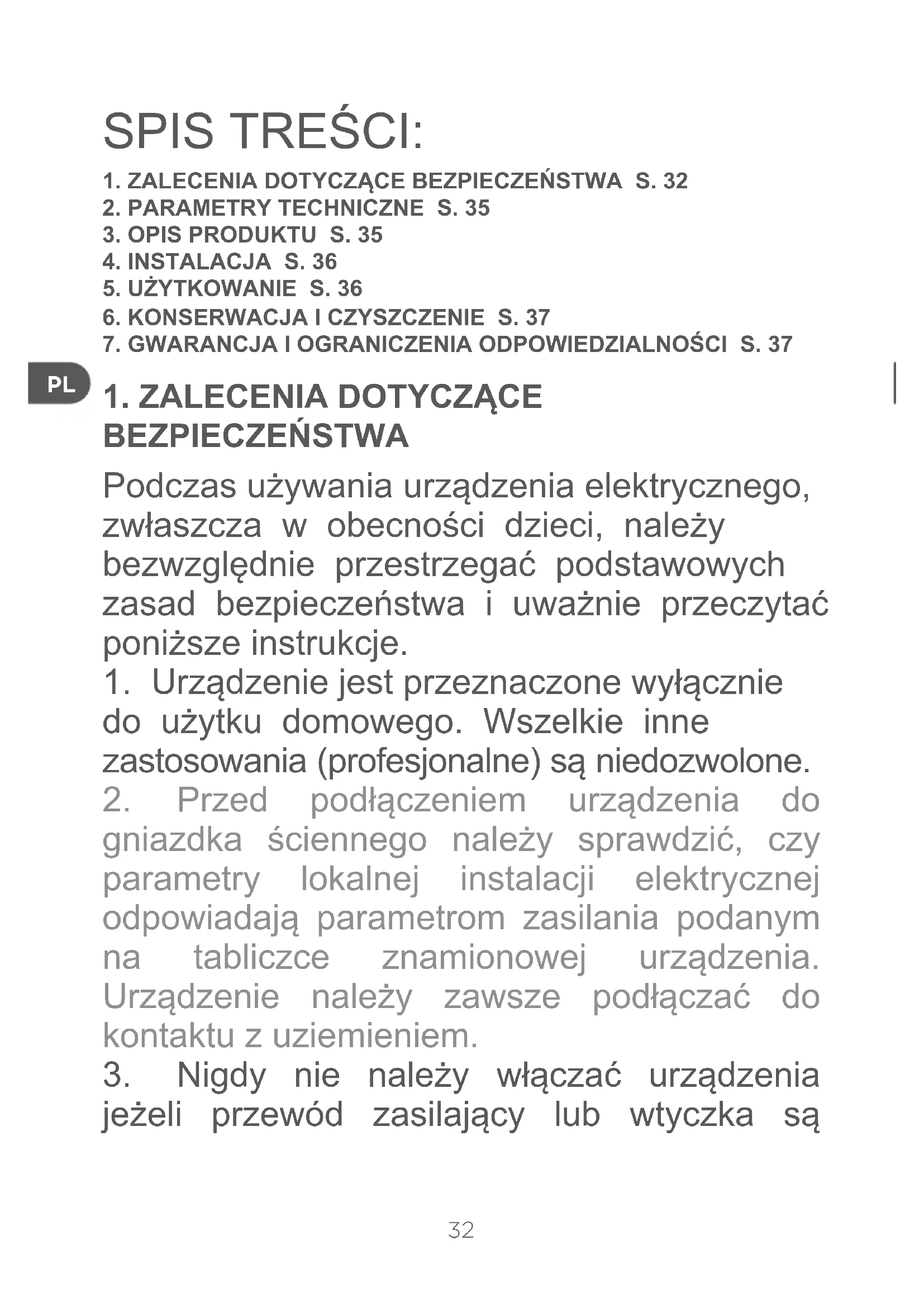BEZPIECZEŃSTWA Podczas używania urządzenia elektrycznego, zwłaszcza w obecności dzieci, należy bezwzględnie przestrzegać podstawowych zasad bezpieczeństwa i uważnie przeczytać poniższe instrukcje.