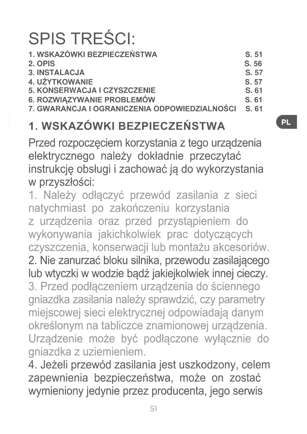 Przed rozpoczęciem korzystania z tego urządzenia elektrycznego należy dokładnie przeczytać instrukcję obsługi i zachować ją do wykorzystania w przyszłości:
