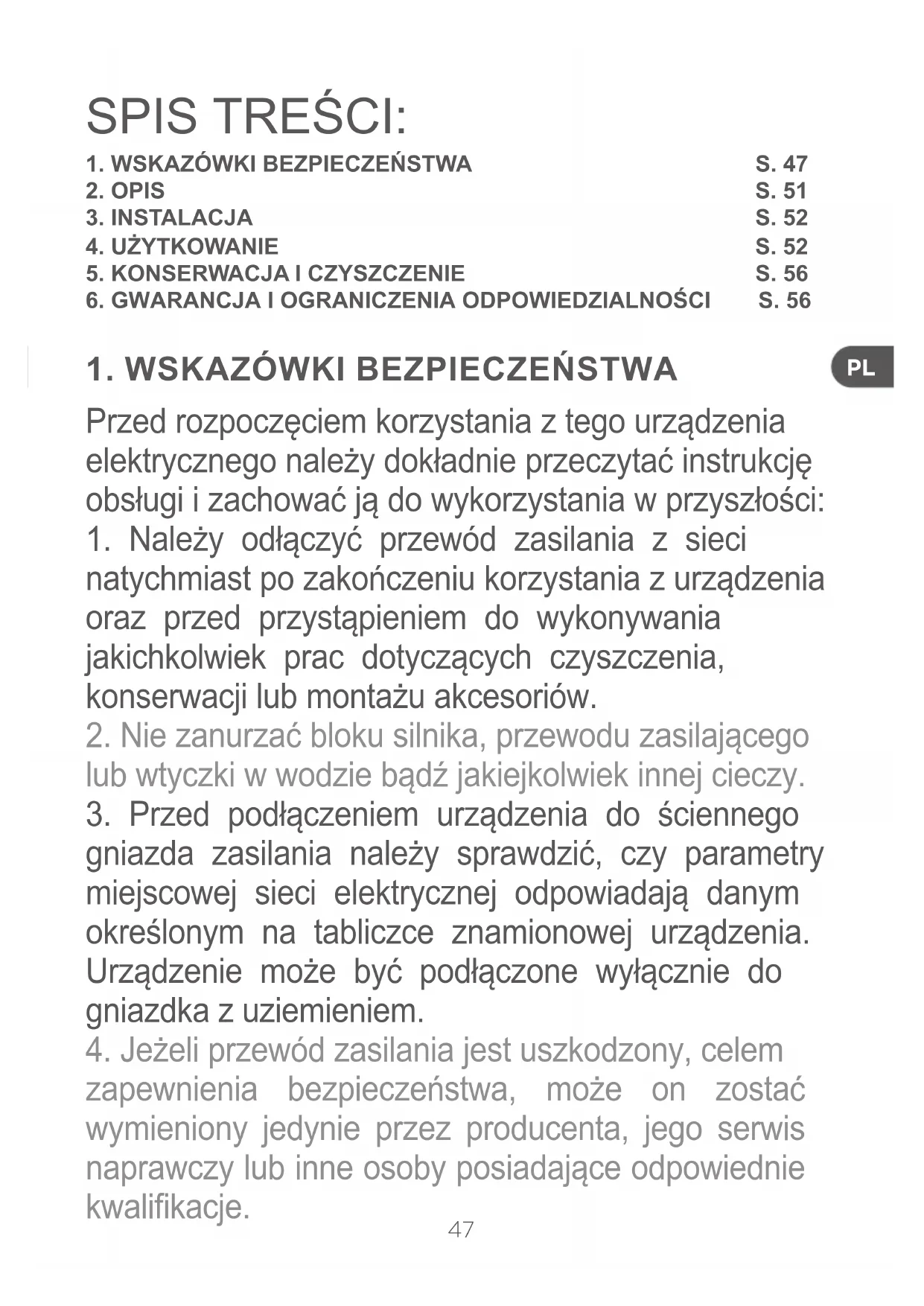 2. Nie zanurzać bloku silnika, przewodu zasilającego