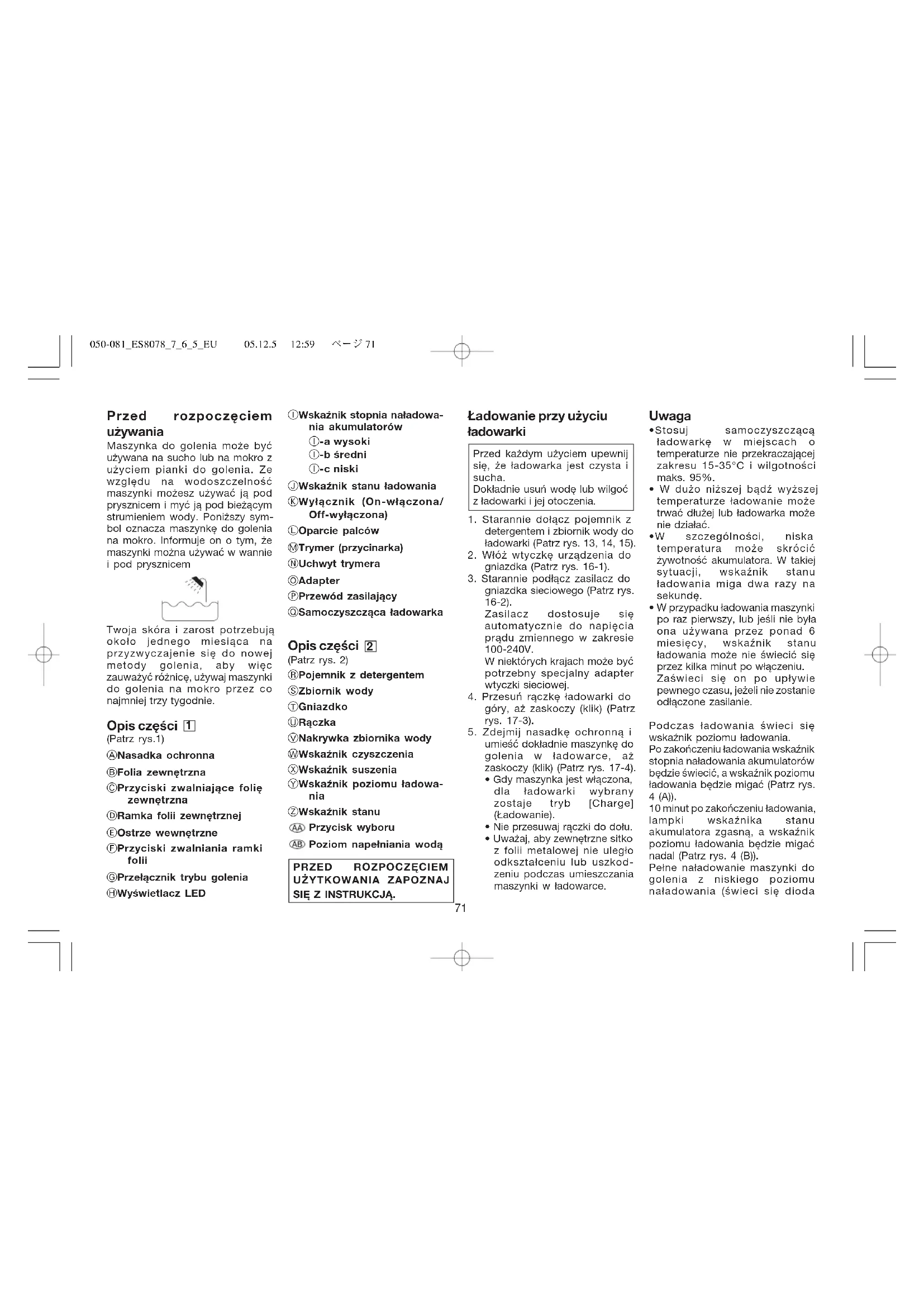 050-081ES8078765EU 05.12.5 12:59 ページ72natychmiast po umieszczeniu maszynki w ładowarce.