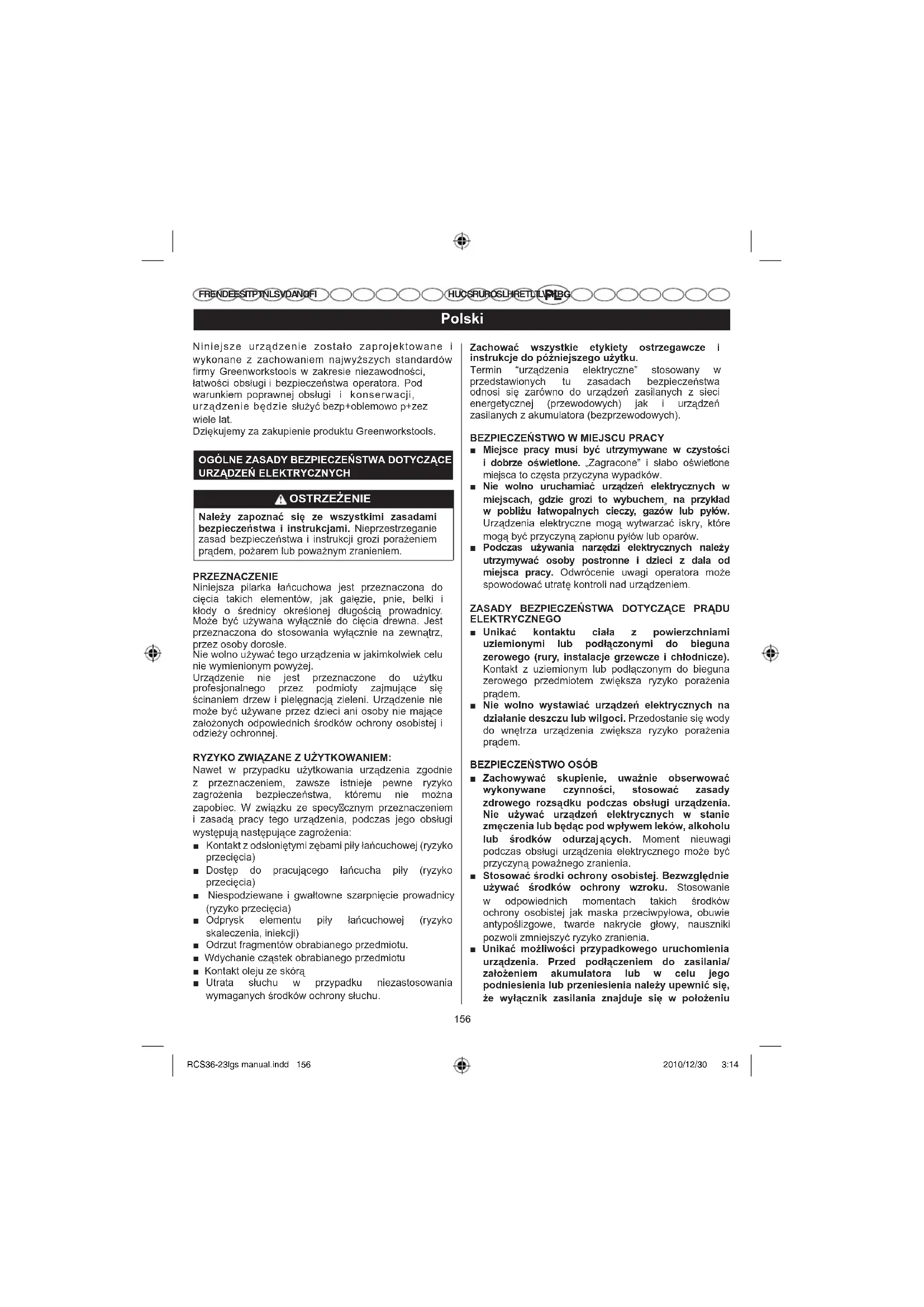 G24CS25 - Piła GREENWORKS - Bezpłatna instrukcja obsługi