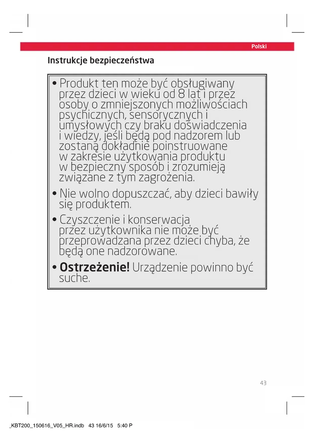- Ostrzeżenie! Urzadzenia powinno bycSuche.