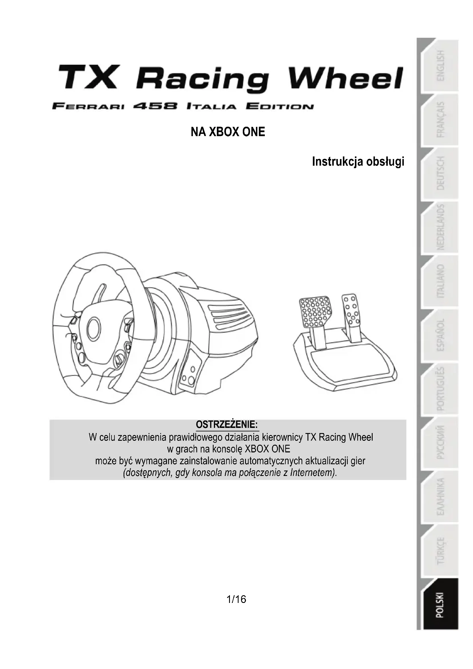 INSTRUKCJA OBSŁUGI TX Ferrari Italia (Xbox One) THRUSTMASTER