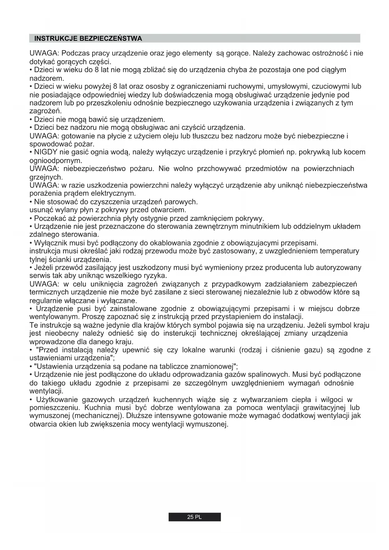 - Dzieci bez nadzoru nie mogą obsługiwac ani czyścić urządzenia. UWAGA: gotowanie na płycie z użyciem oleju lub tłuszczu bez nadzoru może być niebezpieczne i spowodować pożar.