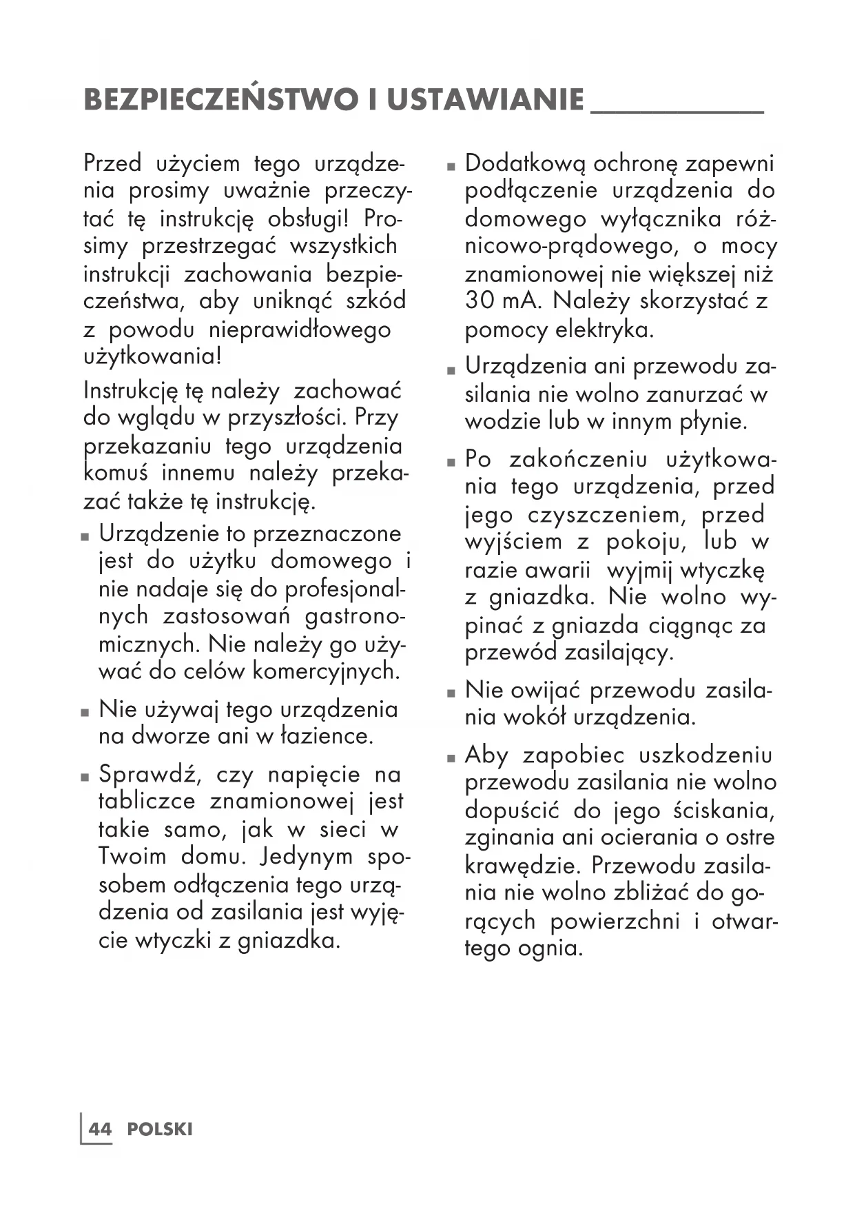 Przed użyciem tego urządze- nia prosimy uważnie przeczy- tać tę instrukcję obsługi! Pro- simy przestrzegać wszystkich instrukcji zachowania bezpie- czeństwa, aby uniknąć szkód z powodu nieprawidłowego użytkowania! Instrukcję tę należy zachować do wglądu w przyszłości. Przy przekazaniu tego urządzenia komuś innemu należy przeka- zać także tę instrukcję.