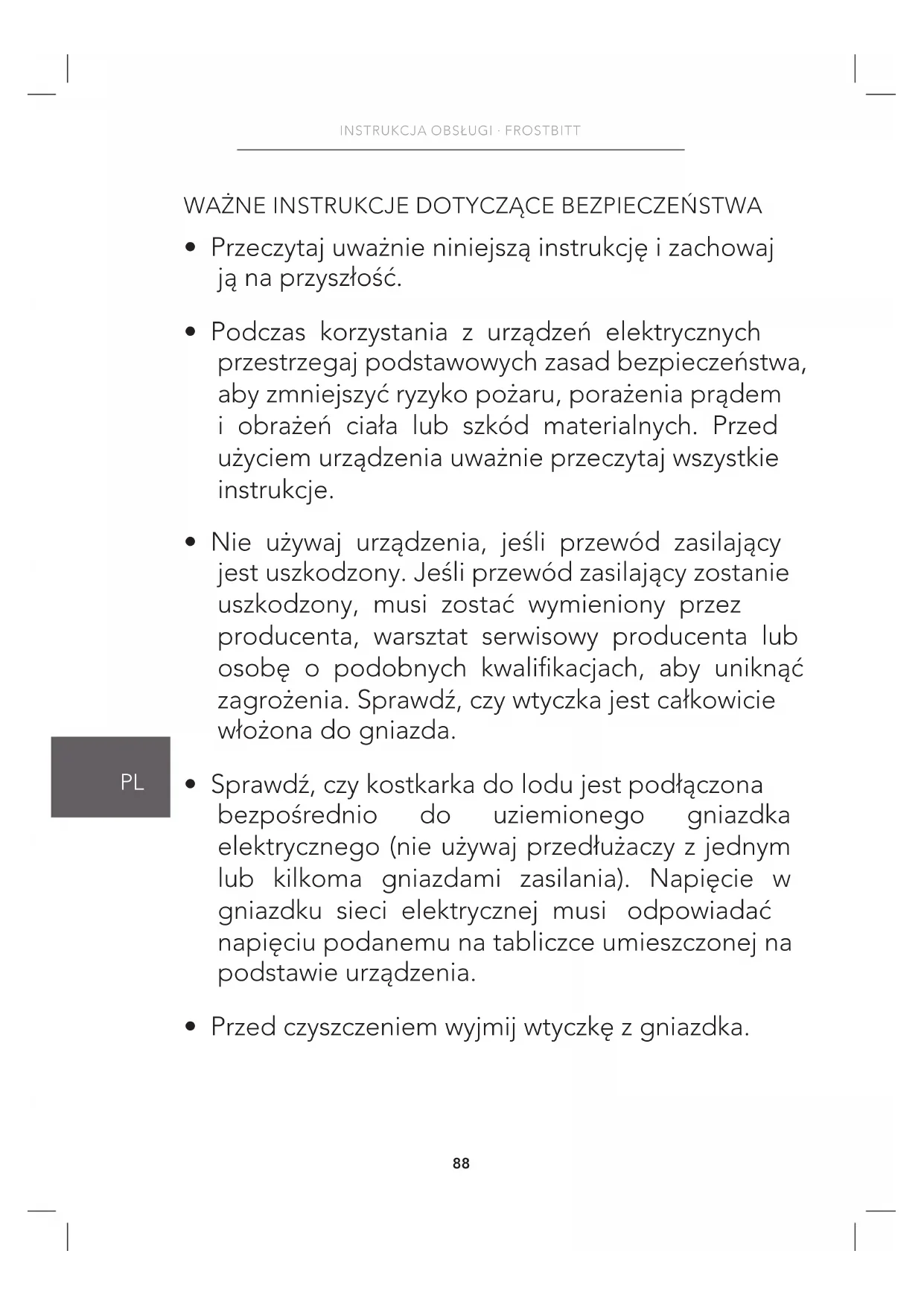 INSTRUKCJA OBSŁUGI Frostbitt ICE12S WILFA