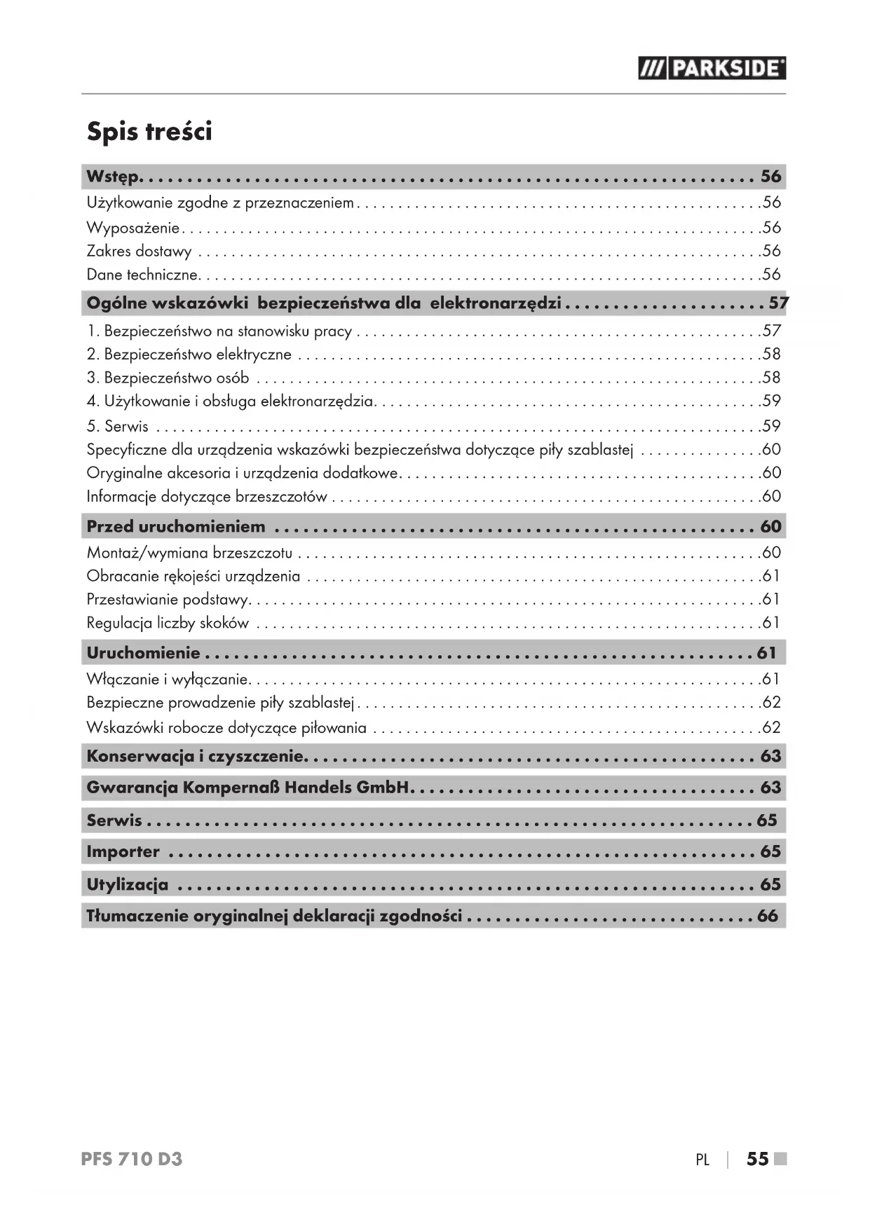 - Tłumaczenie oryginalnej deklaracji zgodności PFS 710 D3 ■ 56 p. 66