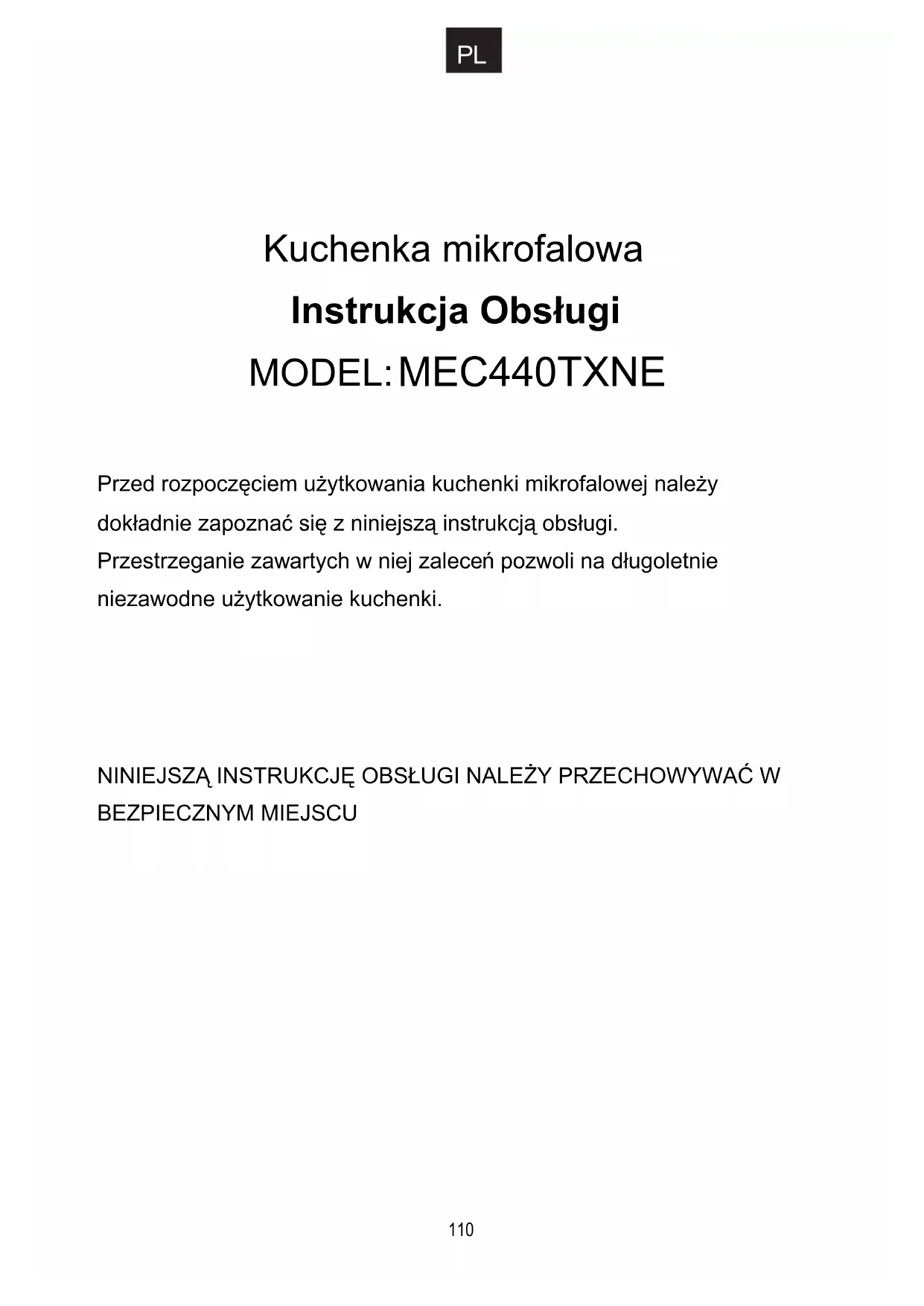 109Kuchenka mikrofalowa Instrukcja Obsługi MODEL: