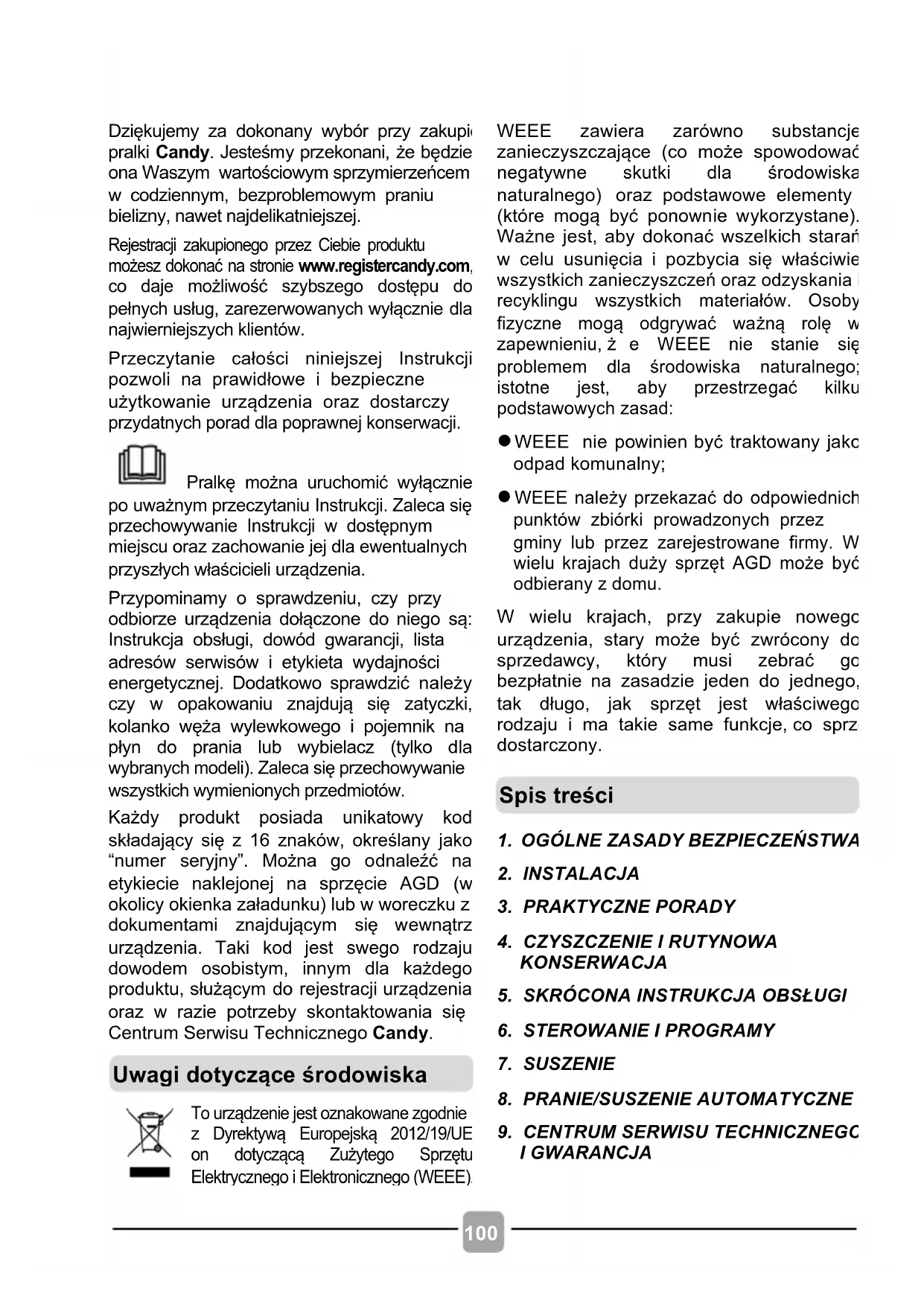 Dziękujemy za dokonany wybór przy zakupie pralki Candy. Jesteśmy przekonani, że będzie ona Waszym wartościowym sprzymierzeńcem w codziennym, bezproblemowym praniu bielizny, nawet najdelikatniejszej. Rejestracji zakupionego przez Ciebie produktu możesz dokonać na stronie www.registercandy.com, co daje możliwość szybszego dostępu do pełnych usług, zarezerwowanych wyłącznie dla najwierniejszych klientów.