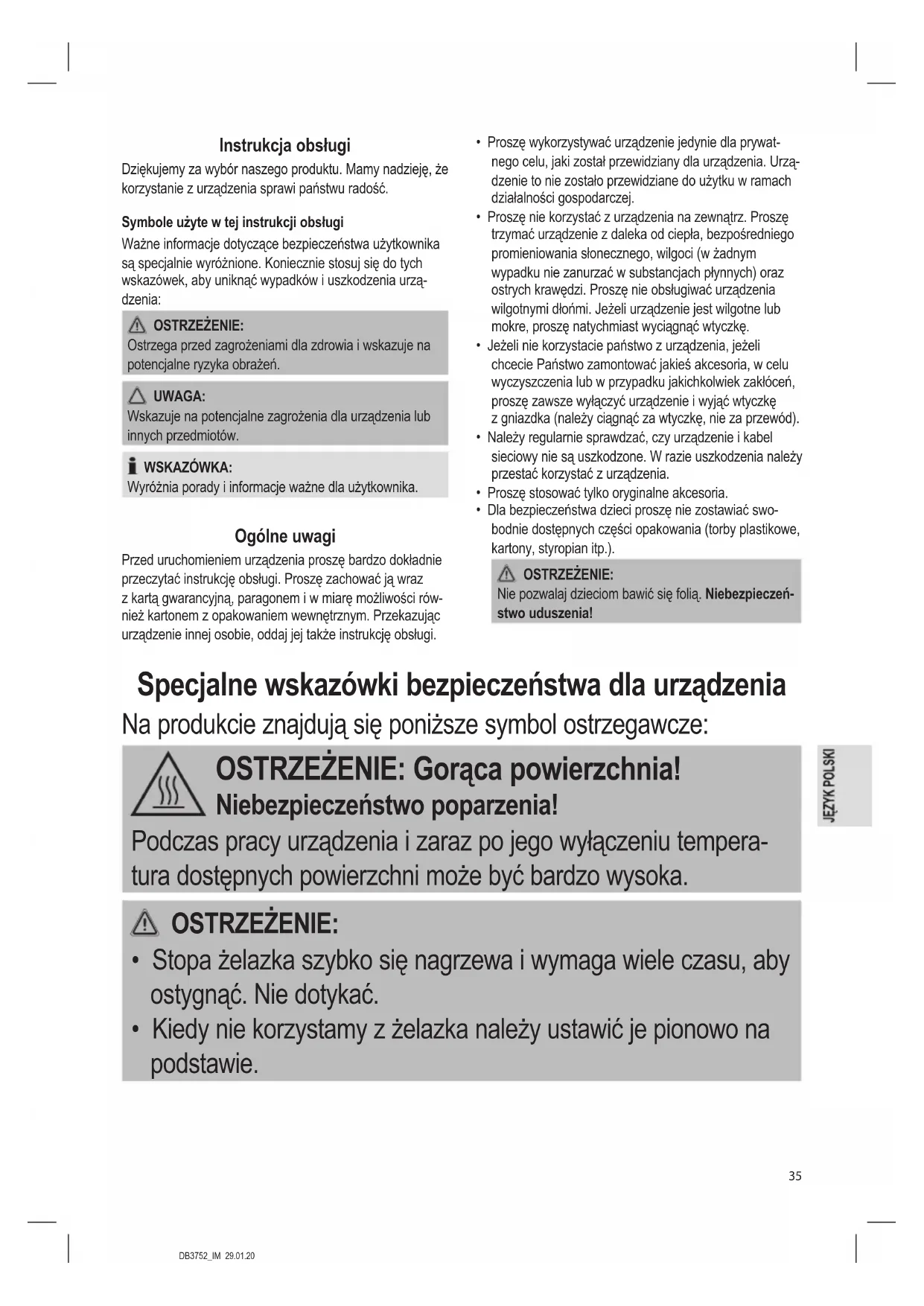 - Czynności w zakresie czyszczenia oraz konserwacji nie mogą wykonywać dzieci.DB3752_IM 29.01.20