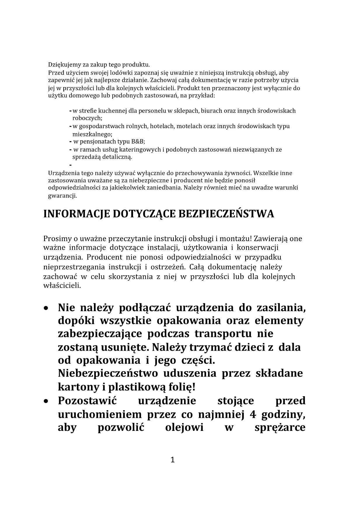 Dziękujemy za zakup tego produktu. Przed użyciem swojej lodówki zapoznaj się uważnie z niniejszą instrukcją obsługi, aby zapewnić jej jak najlepsze działanie. Zachowaj całą dokumentację w razie potrzeby użycia jej w przyszłości lub dla kolejnych właścicieli. Produkt ten przeznaczony jest wyłącznie do użytku domowego lub podobnych zastosowań, na przykład: - w strefie kuchennej dla personelu w sklepach, biurach oraz innych środowiskach roboczych; - w gospodarstwach rolnych, hotelach, motelach oraz innych środowiskach typu mieszkalnego; - w pensjonatach typu B&B; - w ramach usług kateringowych i podobnych zastosowań niezwiązanych ze sprzedażą detaliczną.