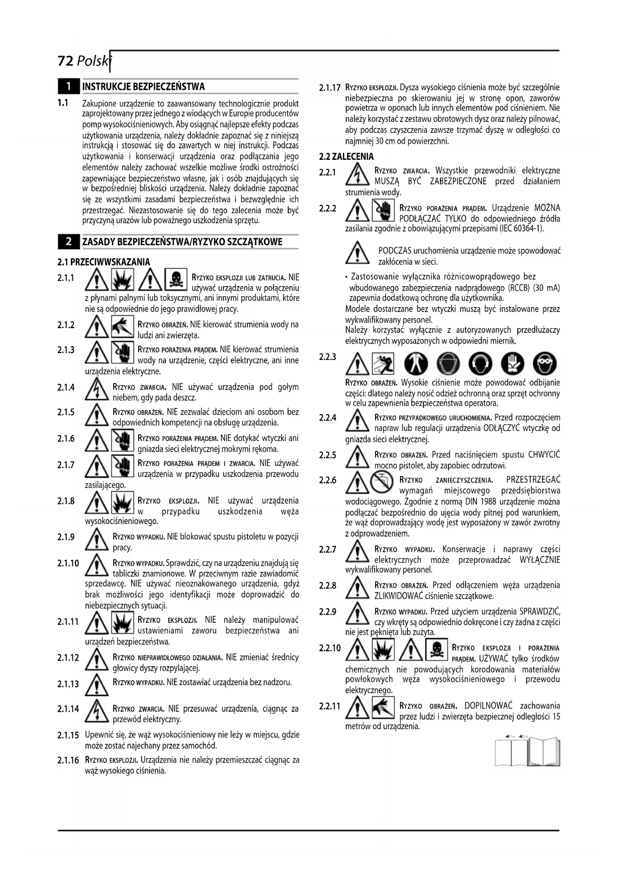 ryzyko eksplozji i porażenia prądem. UŻYWAĆ tylko środków chemicznych nie powodujących korodowania materiałów powłokowych węża wysokociśnieniowego i przewodu elektrycznego.