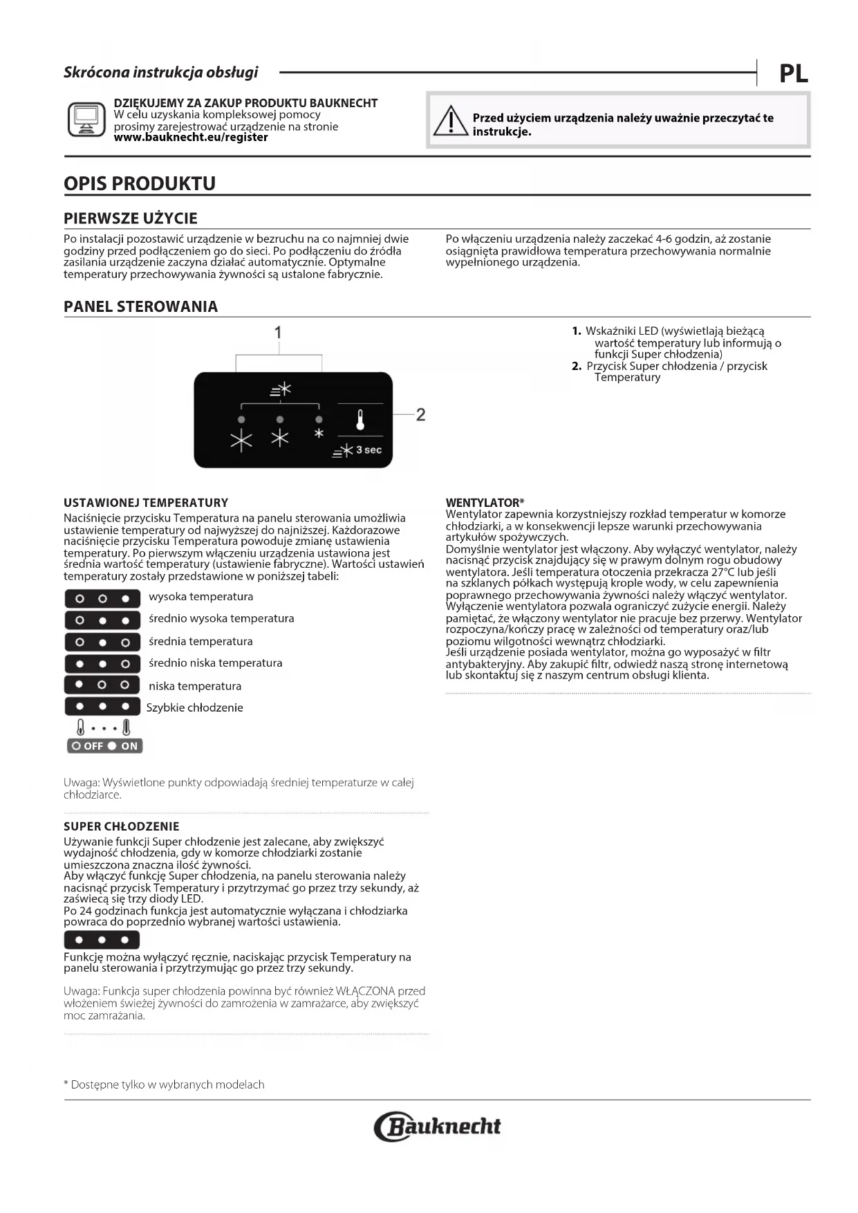 W celu uzyskania kompleksowej pomocy prosimy zarejestrować urządzenie na stronie www . bauknecht . eu/ register Przed użyciem urządzenia należy uważnie przeczytać te instrukcje. OPIS PRODUKTU
