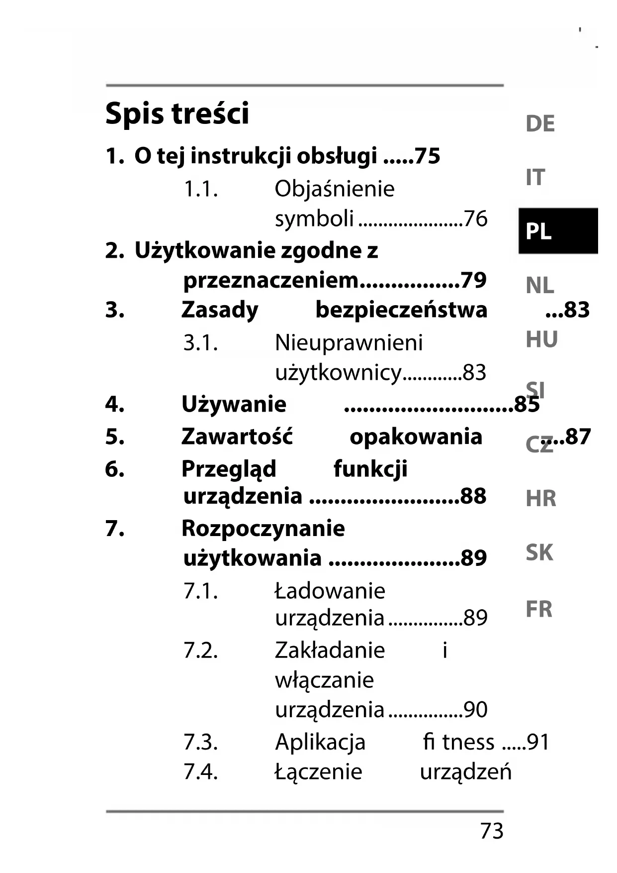 - 7.2. Zakładanie i włączanie urządzenia p. 90