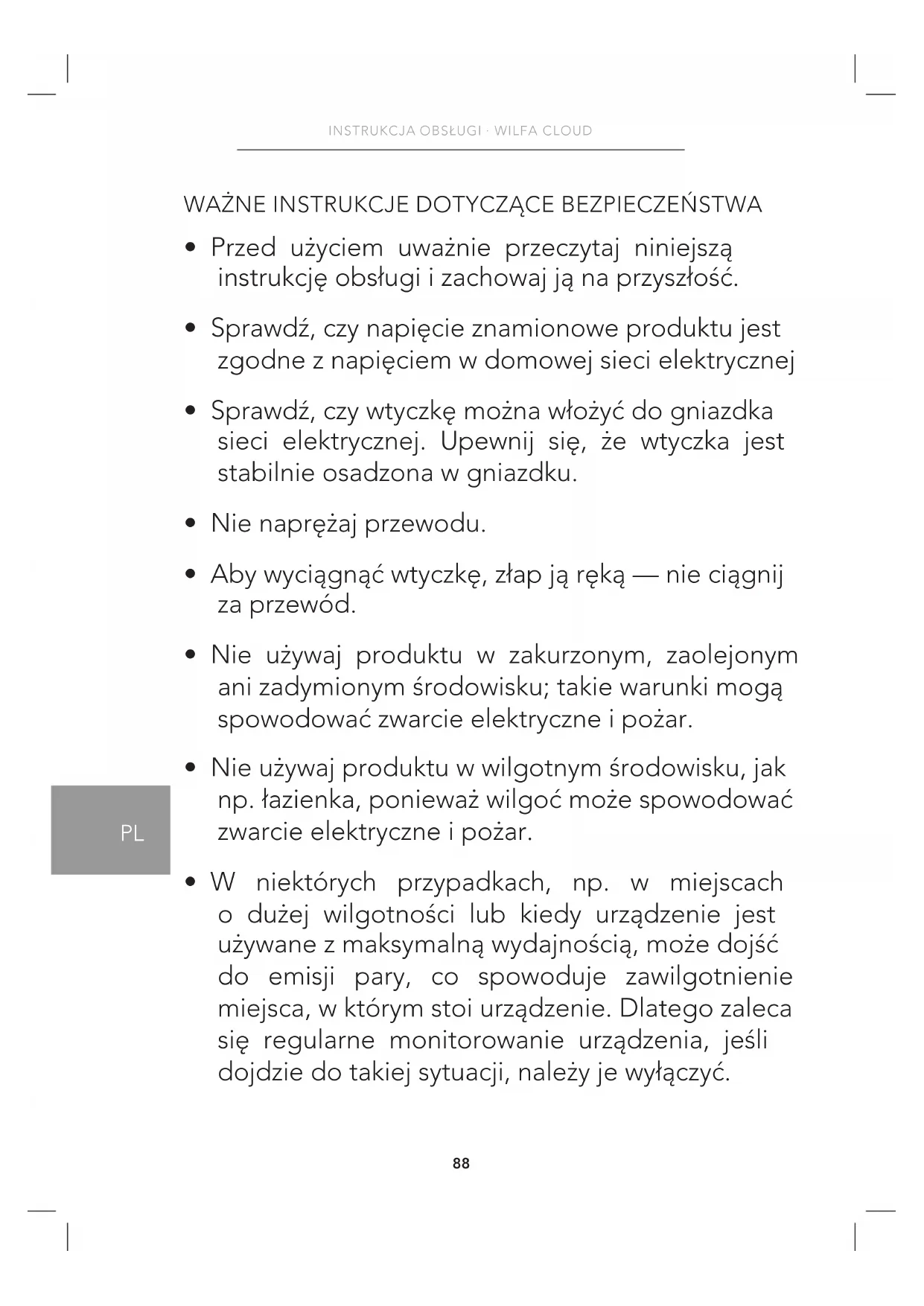 INSTRUKCJA OBSŁUGI Cloud HU35W WILFA
