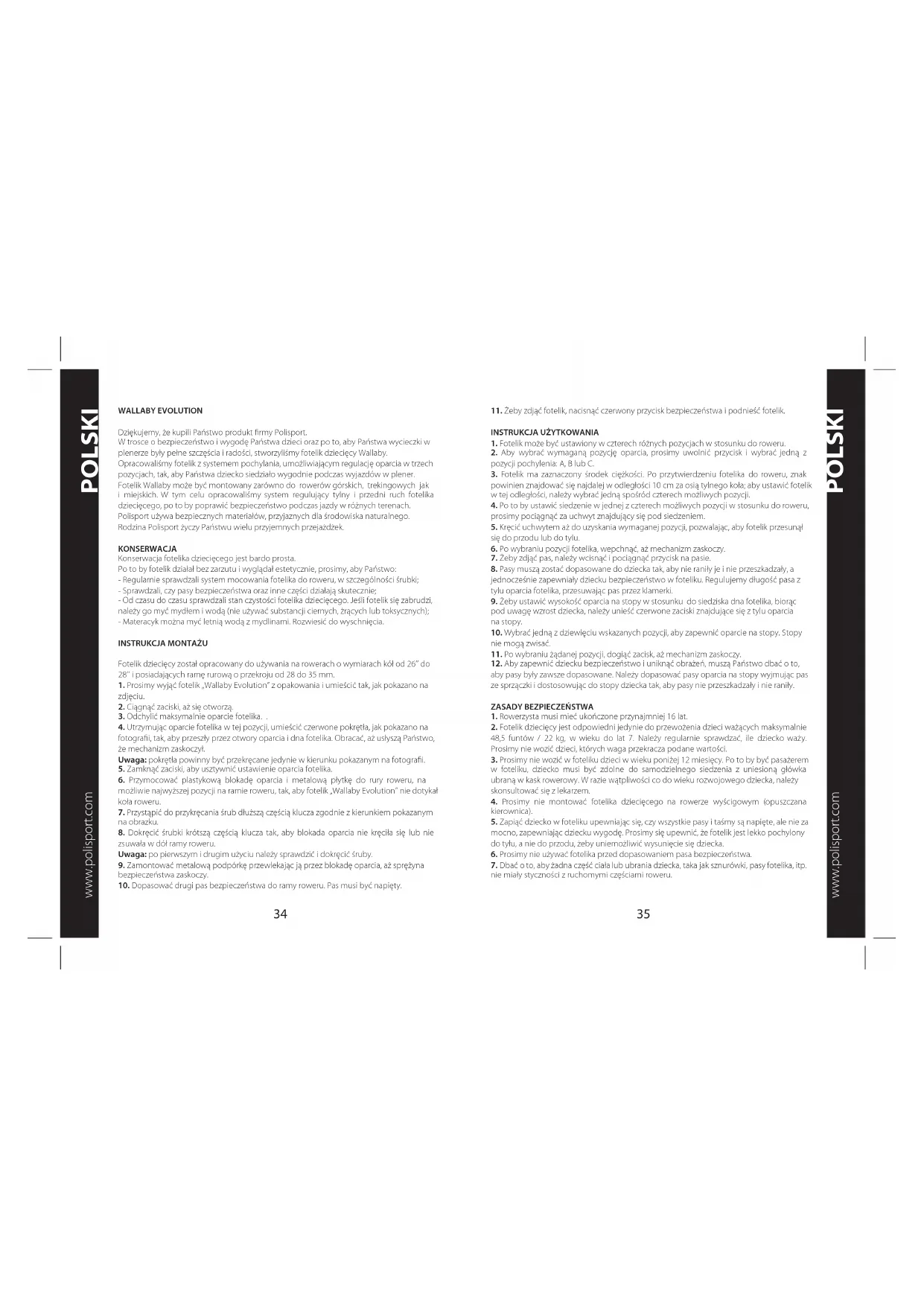 Wallaby Evolution - Fotelik rowerowy dla dziecka Polisport - Bezpłatna instrukcja obsługi