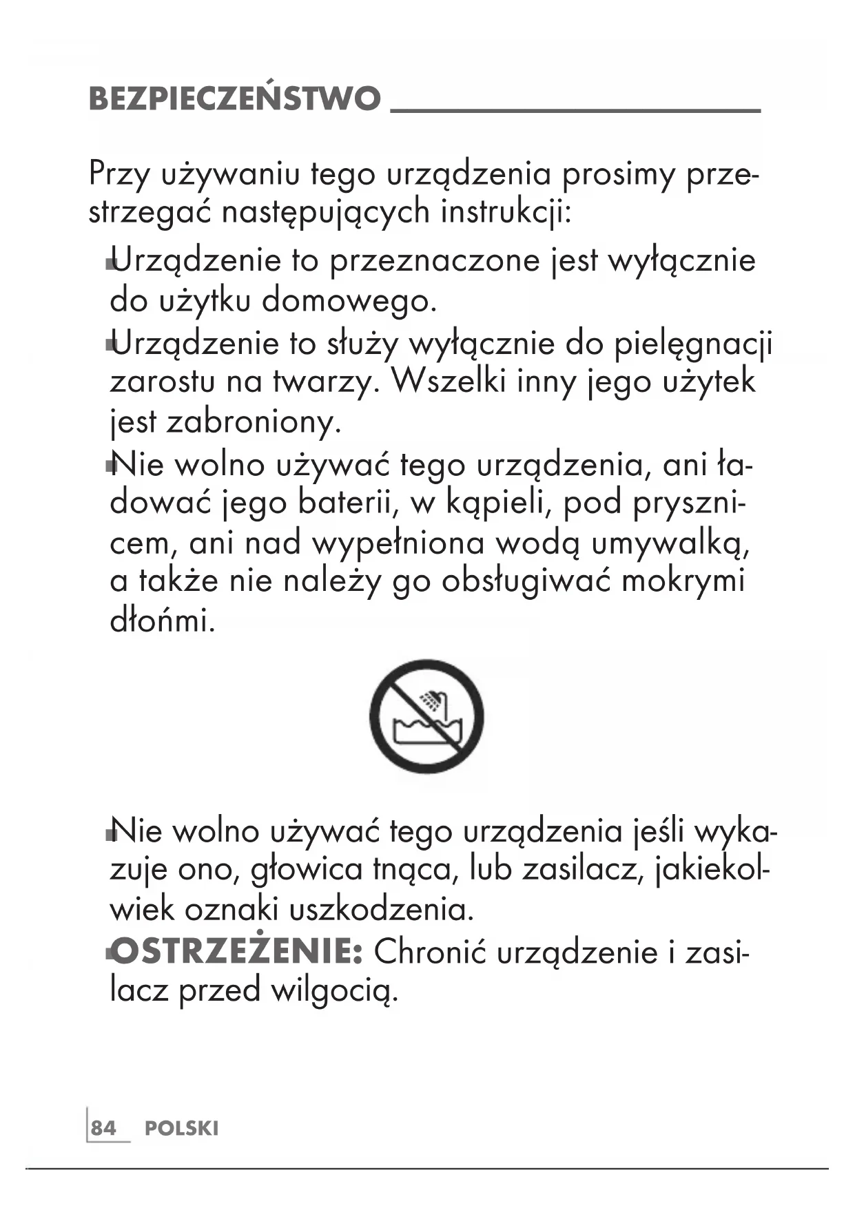 Urządzenie to służy wyłącznie do pielęgnacji zarostu na twarzy. Wszelki inny jego użytek jest zabroniony.