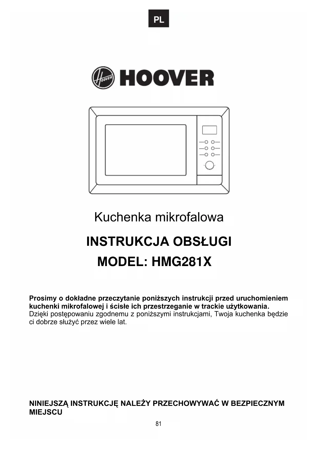 HMG281X - Kuchenka mikrofalowa HOOVER - Bezpłatna instrukcja obsługi