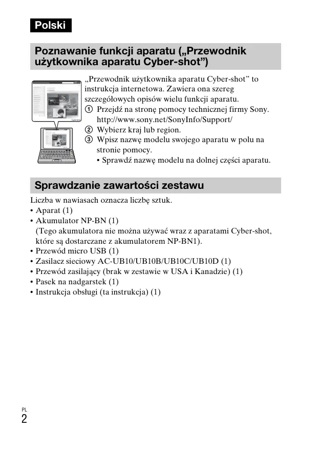 "Przewodnik uzytkownika aparatu Cyber-shot" to instrukcja internetowa. Zawiera ona szereg szeczegołowych opisów wielu funkci aparatu.