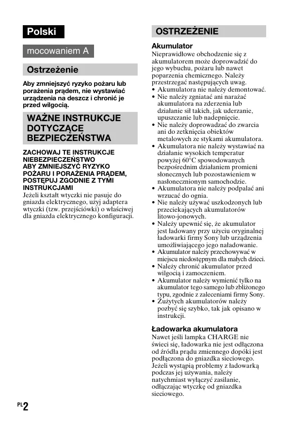 INSTRUKCJA OBSŁUGI ALPHA SLT-A37 SONY