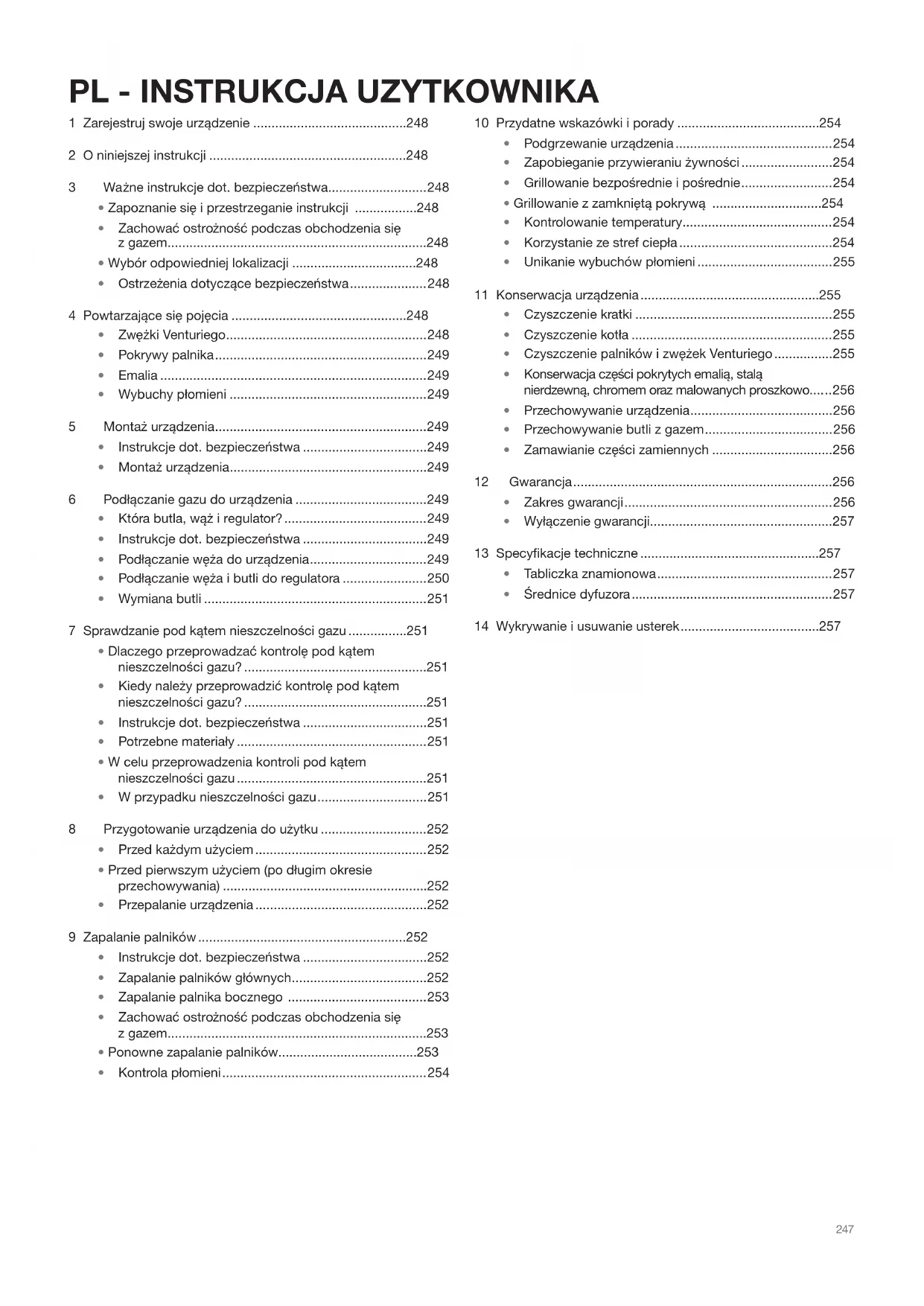 - Grillowanie bezpośrednie i pośrednie ......................... 254