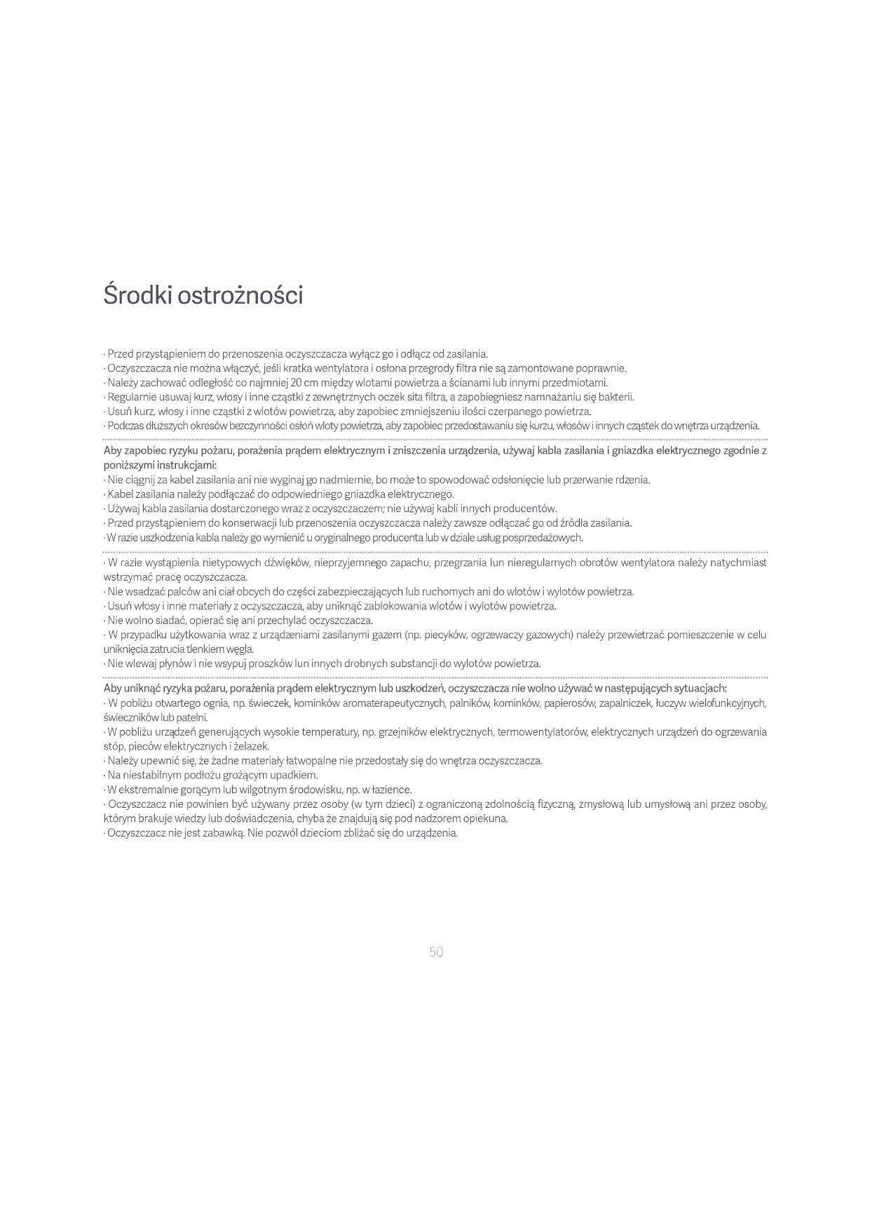 - Oczyszczacz nie powinien być używany przez osoby (w tym dzieci) z ograniczoną zdolnością fizyczną, zmysłową lub umysłową ani przez osoby, którym brakuje wiedzy lub doświadczenia, chyba że znajdują się pod nadzorem opiekuna.