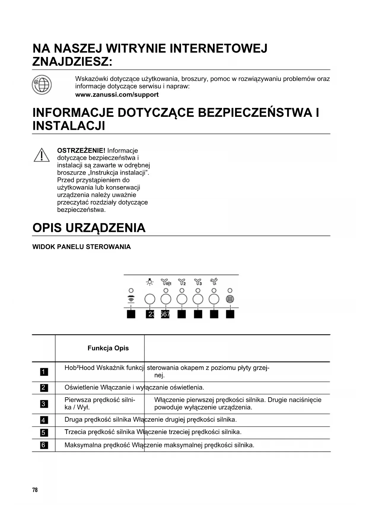 ZNAJDZIESZ: Wskazówki dotyczące użytkowania, broszury, pomoc w rozwiązywaniu problemów oraz informacje dotyczące serwisu i napraw: www.zanussi.com/support