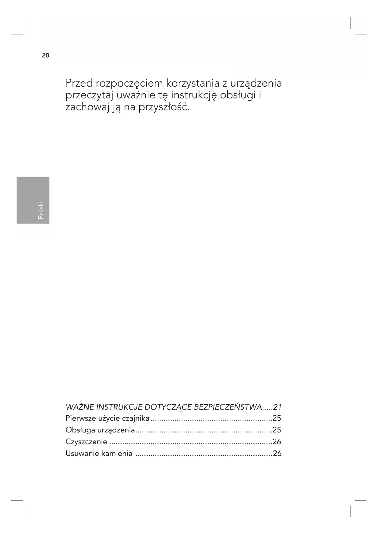 - Przed rozpoczęciem korzystania z czajnika, uważnie przeczytaj instrukcję obsługi.