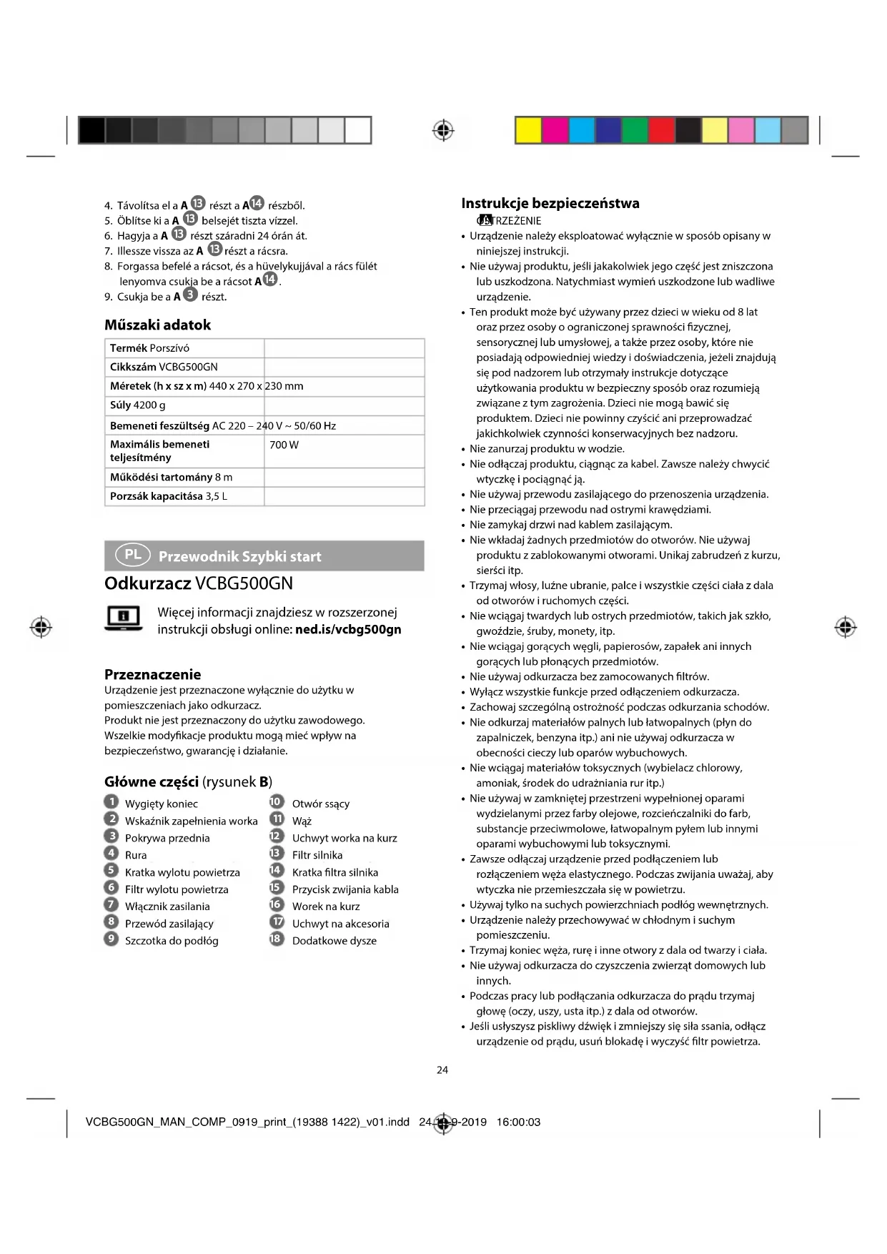 Tartozék fejek VCBG500GN_MAN_COMP_0919_print_(19388 1422)_v01.indd 23 19-9-2019 16:00:0324 Instrukcje bezpieczeństwa