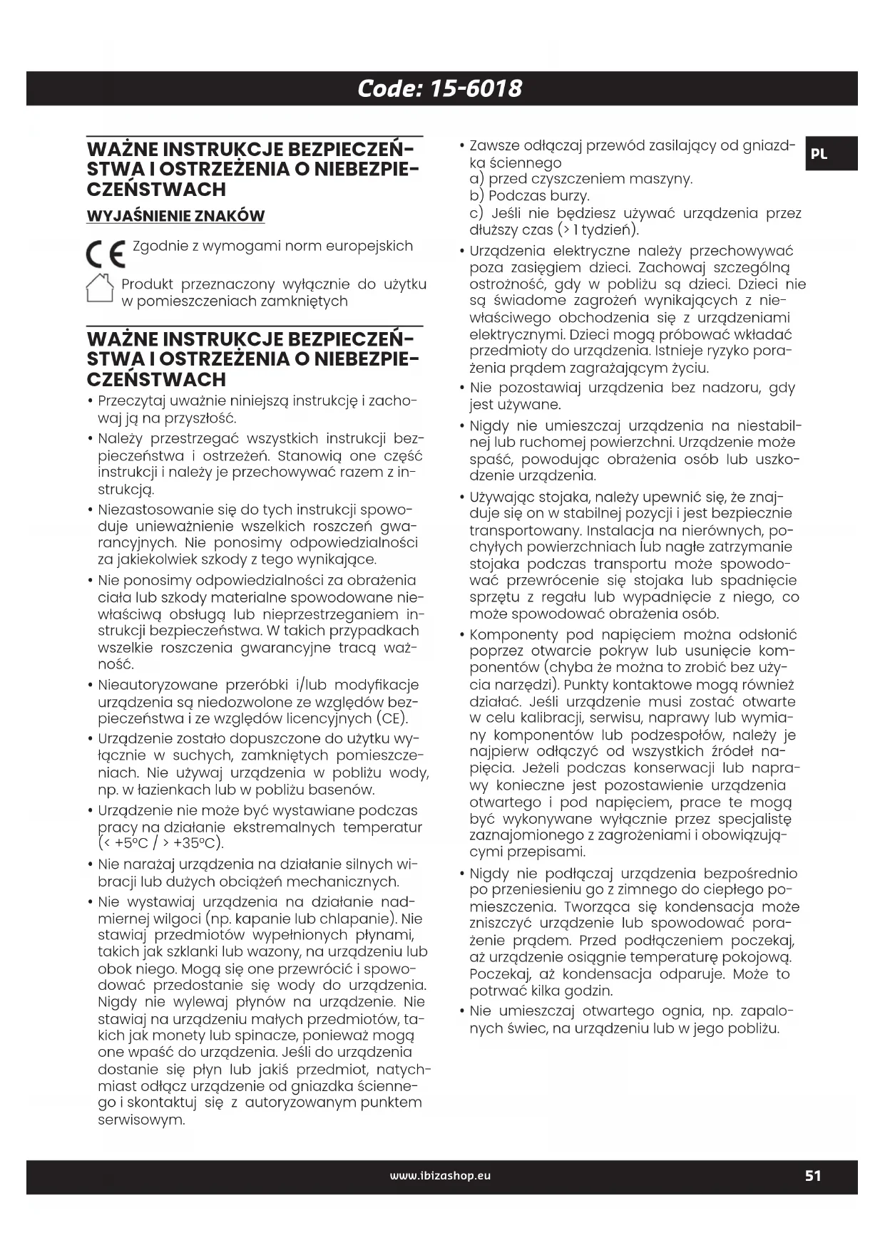 Zgodnie z wymogami norm europejskich Produkt przeznaczony wyłącznie do użytku w pomieszczeniach zamkniętych