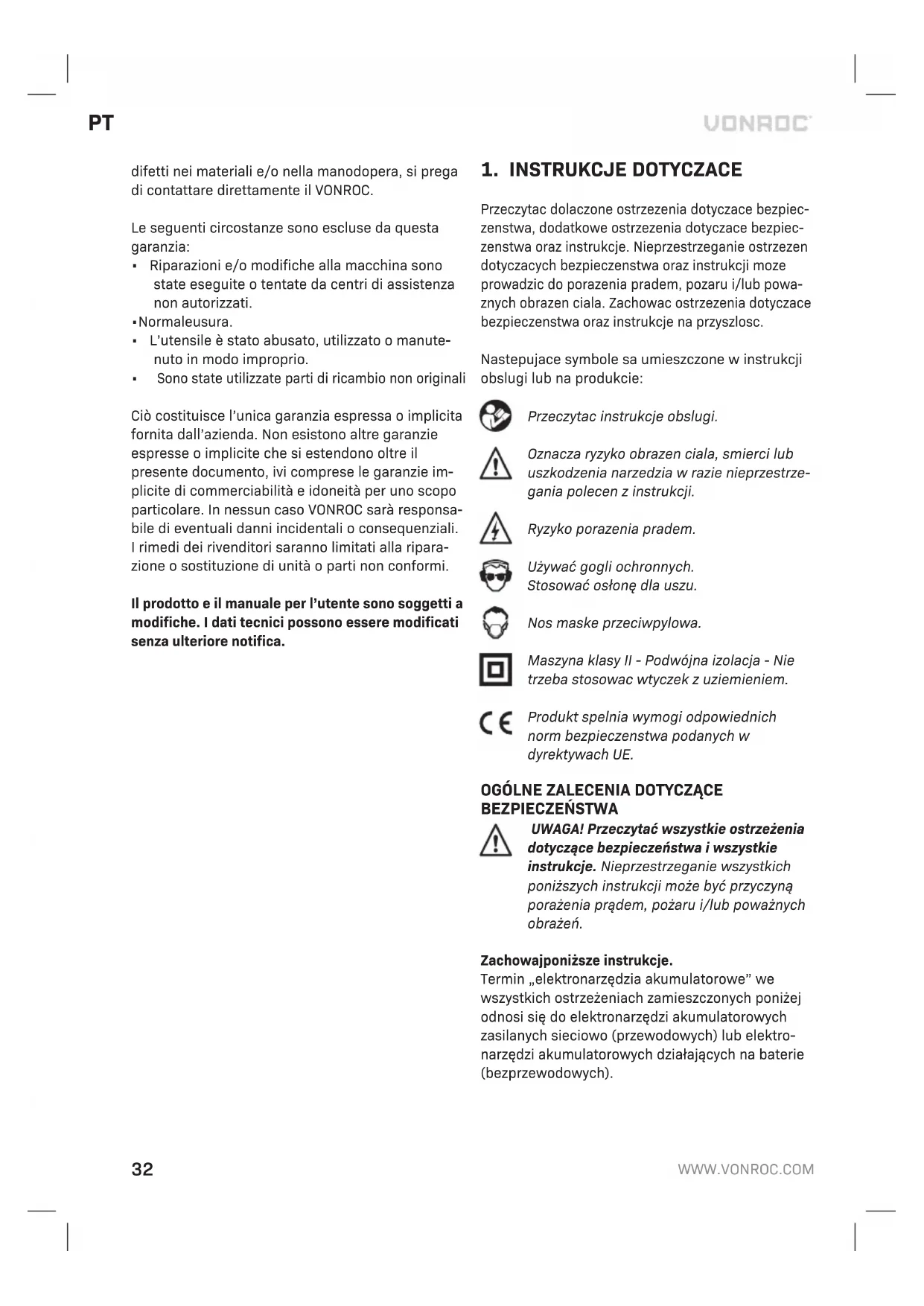 Tłumaczenie instrukcji oryginalnej 32WWW.VONROC.COM2