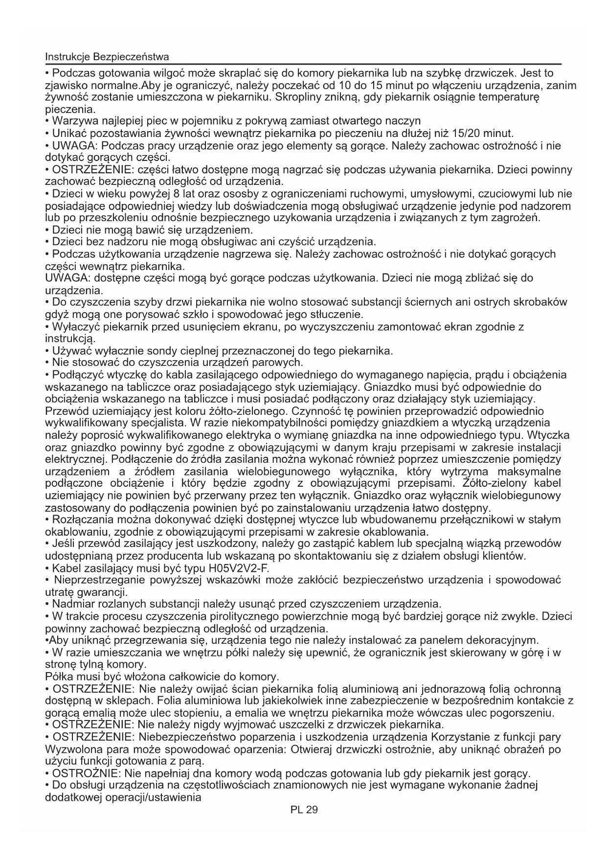 - Do obsługi urządzenia na częstotliwościach znamionowych nie jest wymagane wykonanie żadnej dodatkowej operacji/ustawienia Instrukcje Bezpieczeństwa PL 29Czyszczenie i konserwacja piekarnika Instrukcje ogólne