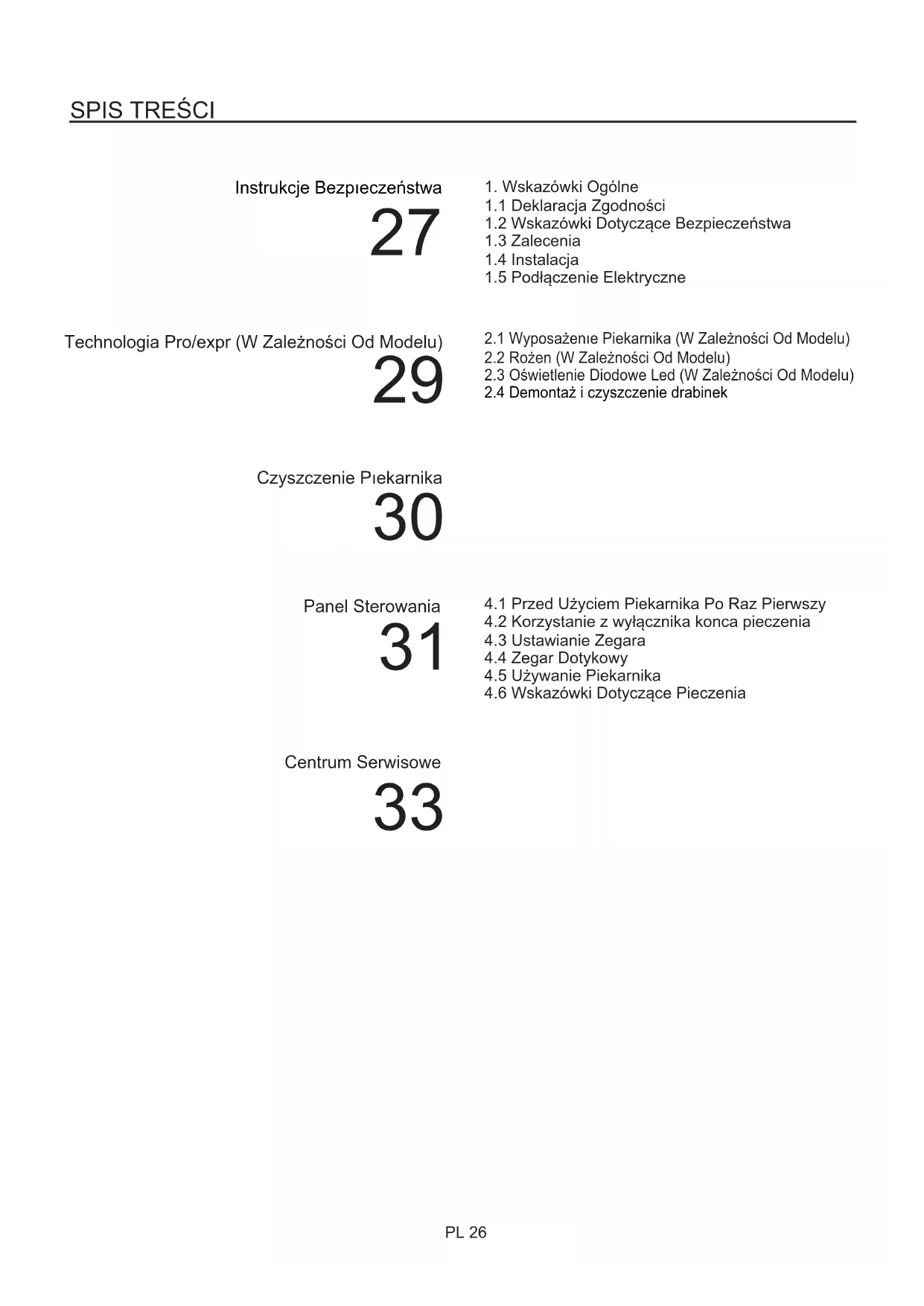 W celu pełnego wykorzystania możliwości piekarnika dokładnie zapoznaj się z niniejszą instrukcją. Przechowuj instrukcję w dostępnym miejscu, aby w razie potrzeby zawsze można było skorzystać z zawartych w niej wskazówek. Przed zainstalowaniem piekarnika spisz jego numer seryjny na wypadek konieczności skorzystania z pomocy serwisu. Po rozpakowaniu piekarnika sprawdź, czy nie nosi on śladów uszkodzeń. W razie jakichkolwiek wątpliwości nie używaj piekarnika, lecz skontaktuj się z serwisem. Zabezpiecz części opakowania, takie jak worki z tworzywa sztucznego, styropian, gwoździe, przed dziećmi. Producent nie ponosi odpowiedzialności w przypadku niezastosowania się do zaleceń zawartych w niniejszej instrukcji. ! UWAGA: Wszelkie funkcje, właściwości oraz akcesoria wymienione w niniejszej instrukcji mogą zostać wymienione w zależności od modelu piekarnika. PL 282