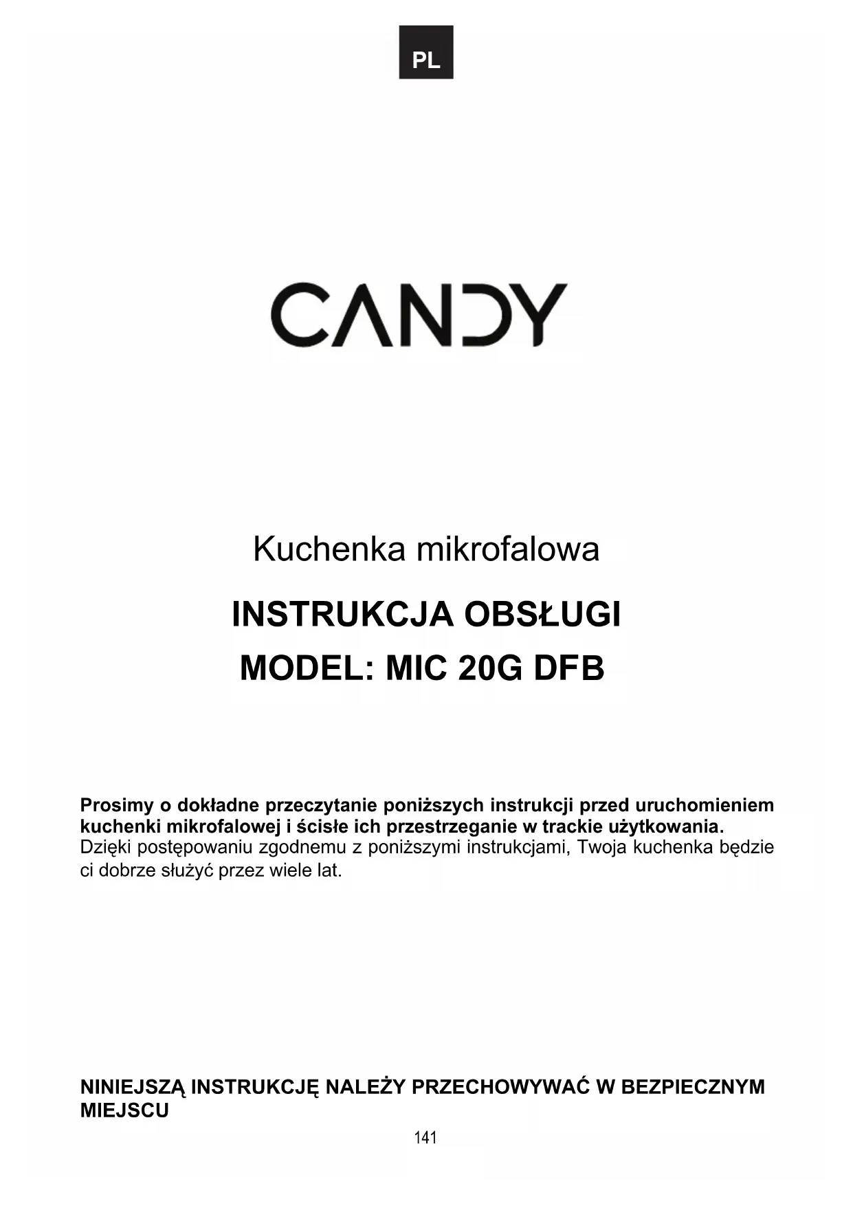 INSTRUKCJA OBSŁUGI MIC20GDFBA CANDY