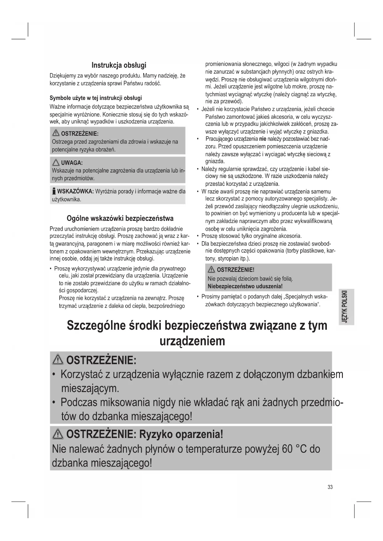 - Korzystać z urządzenia wyłącznie razem z dołączonym dzbankiem mieszającym.