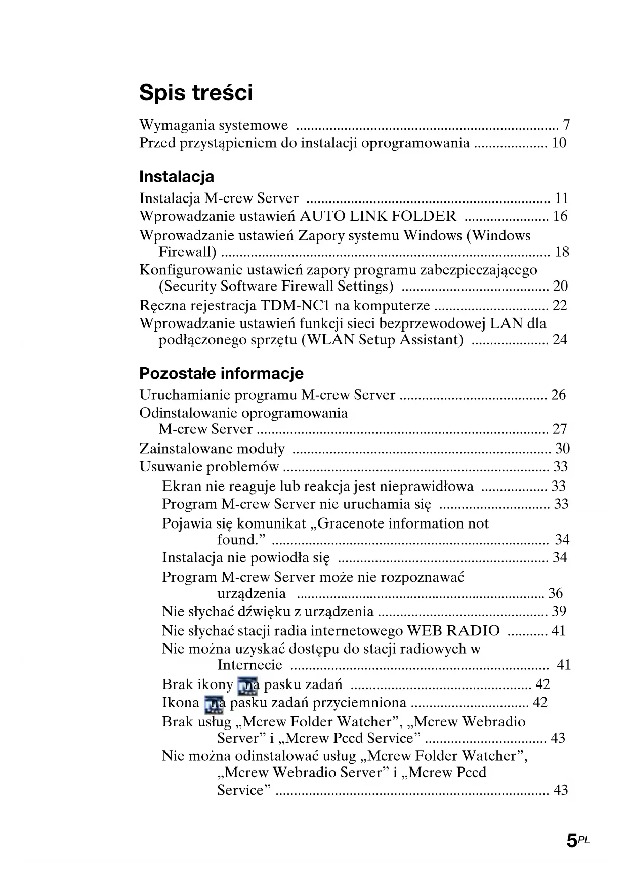 - Odinstalowanie oprogramowania M-crew Server p. 27