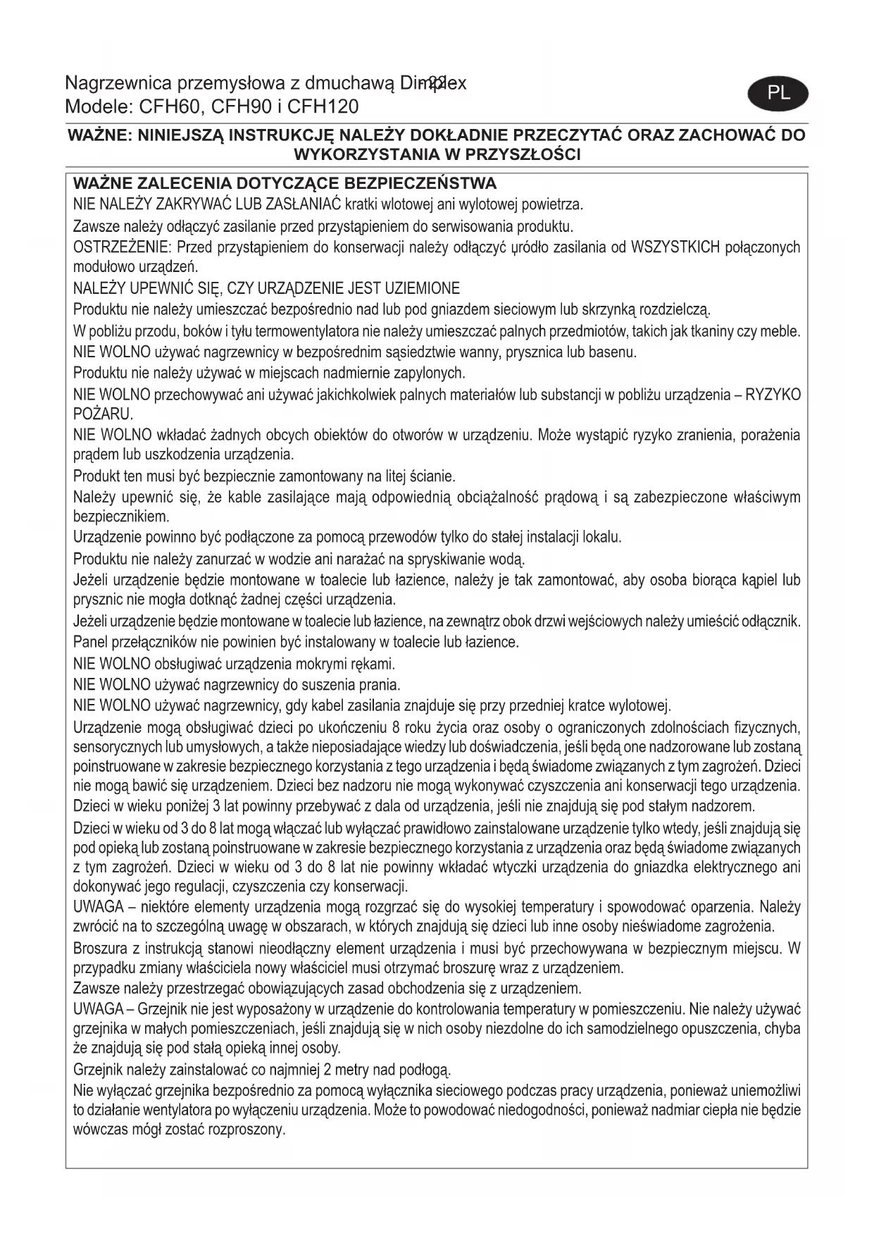 INSTRUKCJA OBSŁUGI CFH120 DIMPLEX