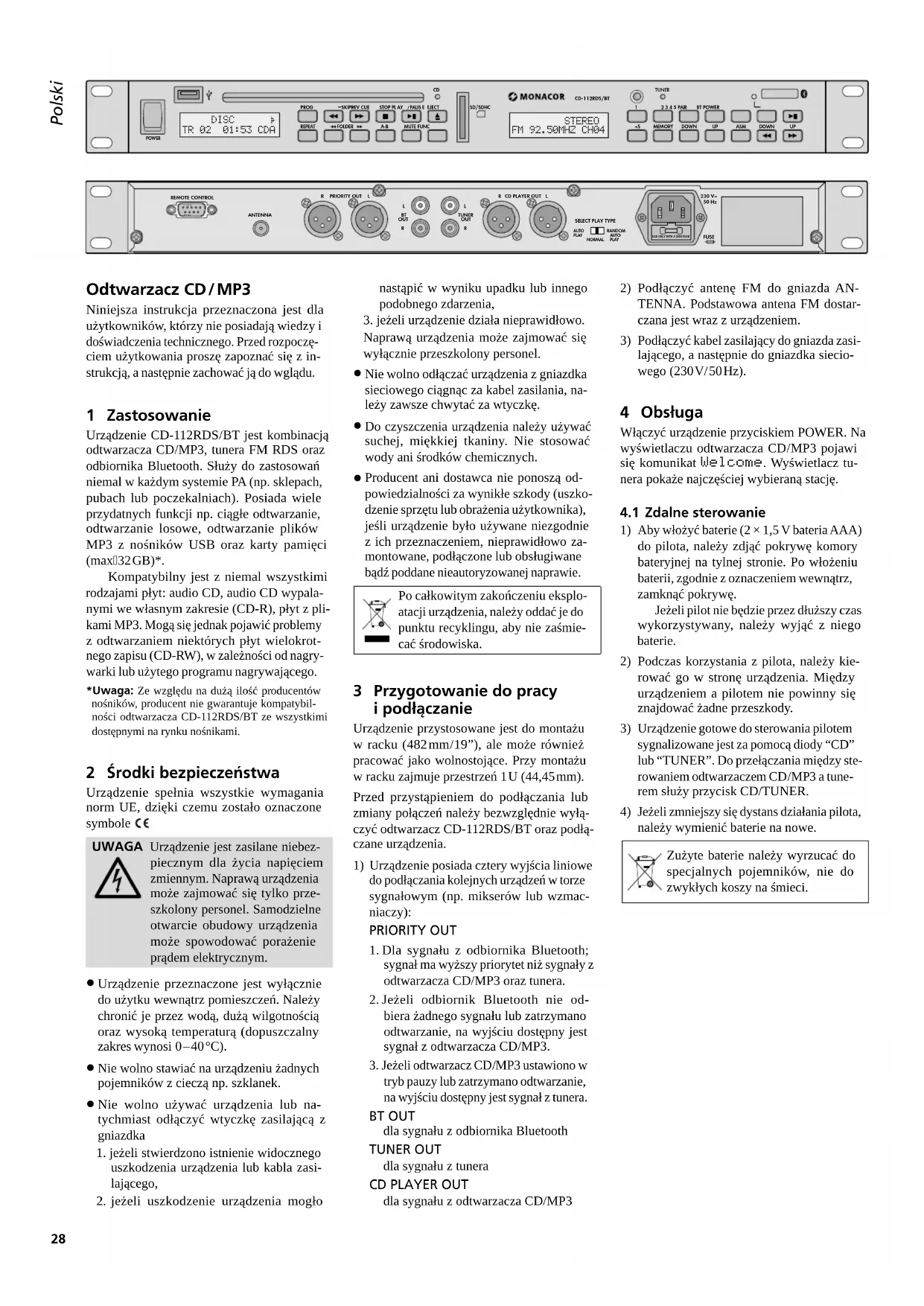 Znajdź bezpłatnie instrukcję urządzenia CD112RDSBT Monacor w formacie PDF.
