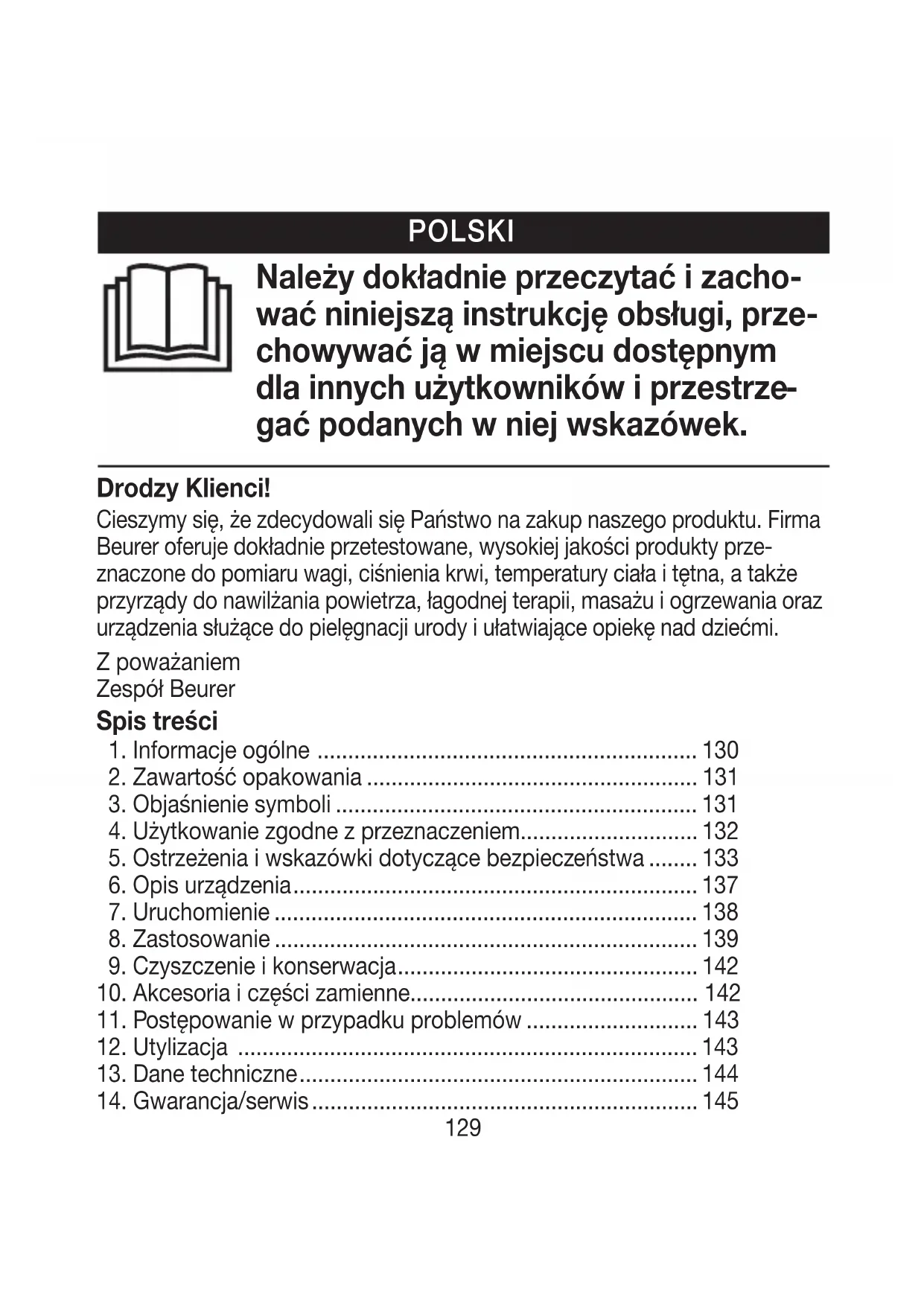 gać podanych wniej wskazówek. Drodzy Klienci! Cieszymy się, że zdecydowali się Państwo na zakup naszego produktu. Firma Beurer oferuje dokładnie przetestowane, wysokiej jakości produkty prze- znaczone do pomiaru wagi, ciśnienia krwi, temperatury ciała itętna, atakże przyrządy do nawilżania powietrza, łagodnej terapii, masażu iogrzewania oraz urządzenia służące do pielęgnacji urody iułatwiające opiekę nad dziećmi. Zpoważaniem Zespół Beurer