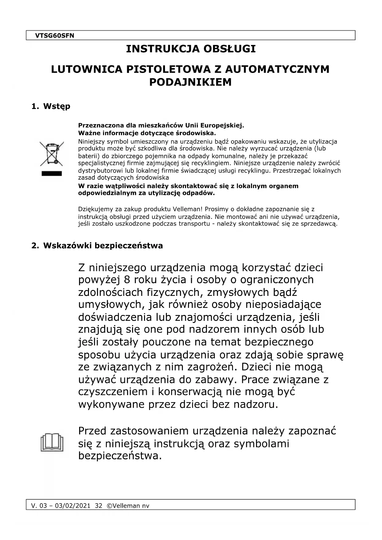 INSTRUKCJA OBSŁUGI VTSG60SFN VELLEMAN