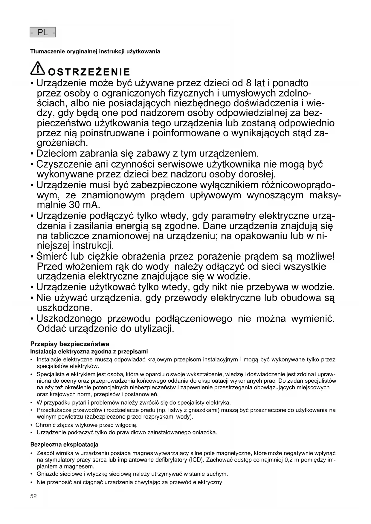 - PL - Tłumaczenie oryginalnej instrukcji użytkowania OSTRZEŻENIE