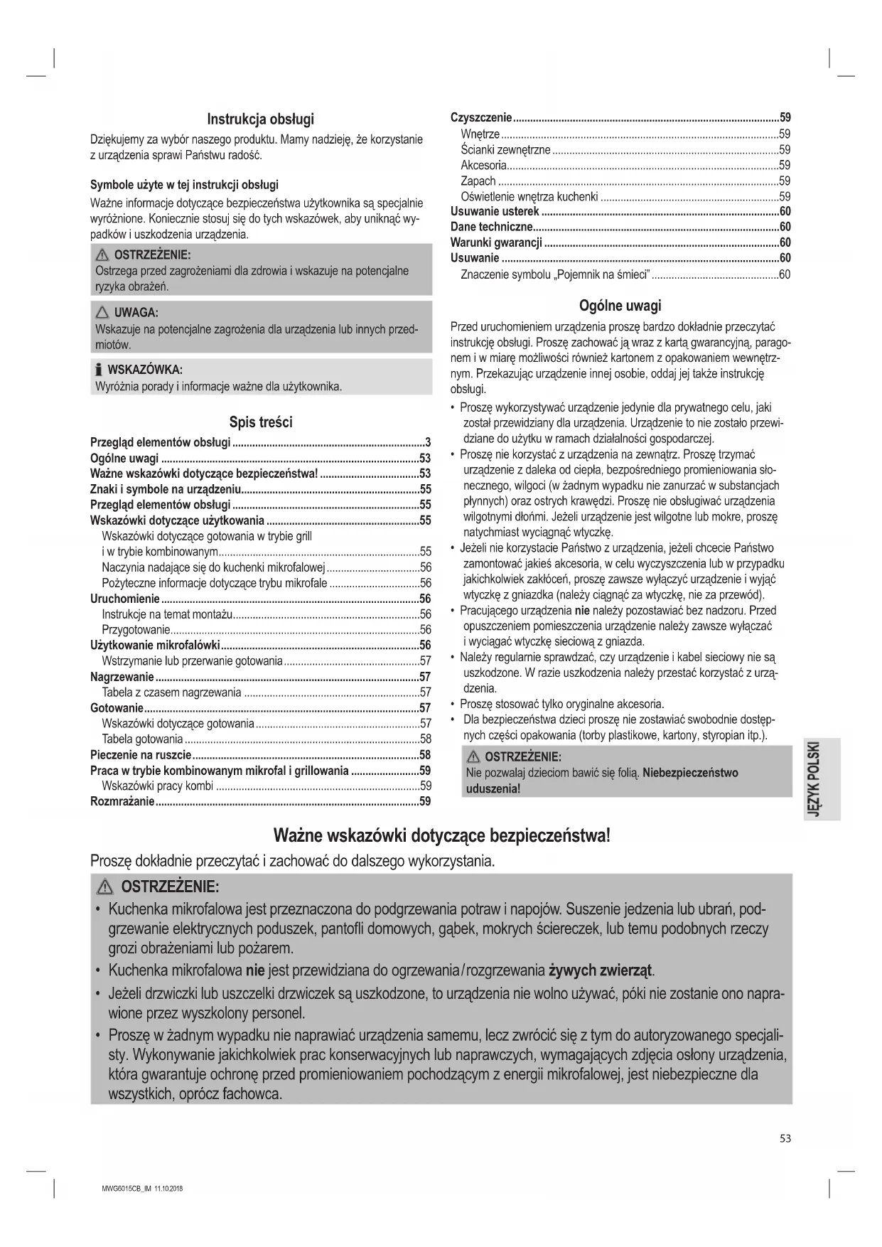 - Pożyteczne informacje dotyczące trybu mikrofale p. 56