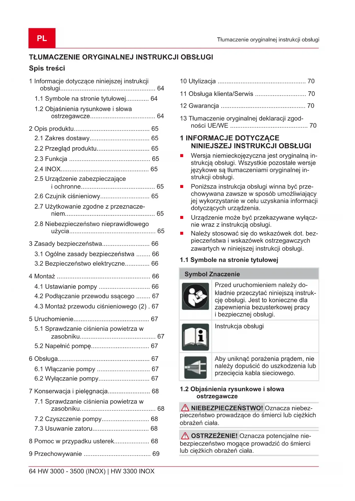 Spis treści 1 Informacje dotyczące niniejszej instrukcji obsługi...................................................... 64