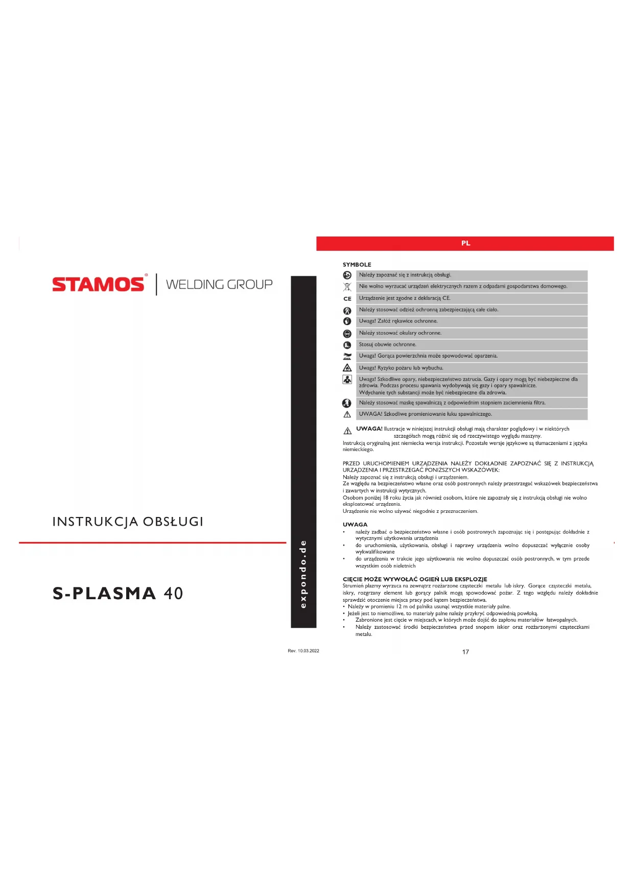 SPLASMA 40 - Poste à souder plasma Stamos - Bezpłatna instrukcja obsługi