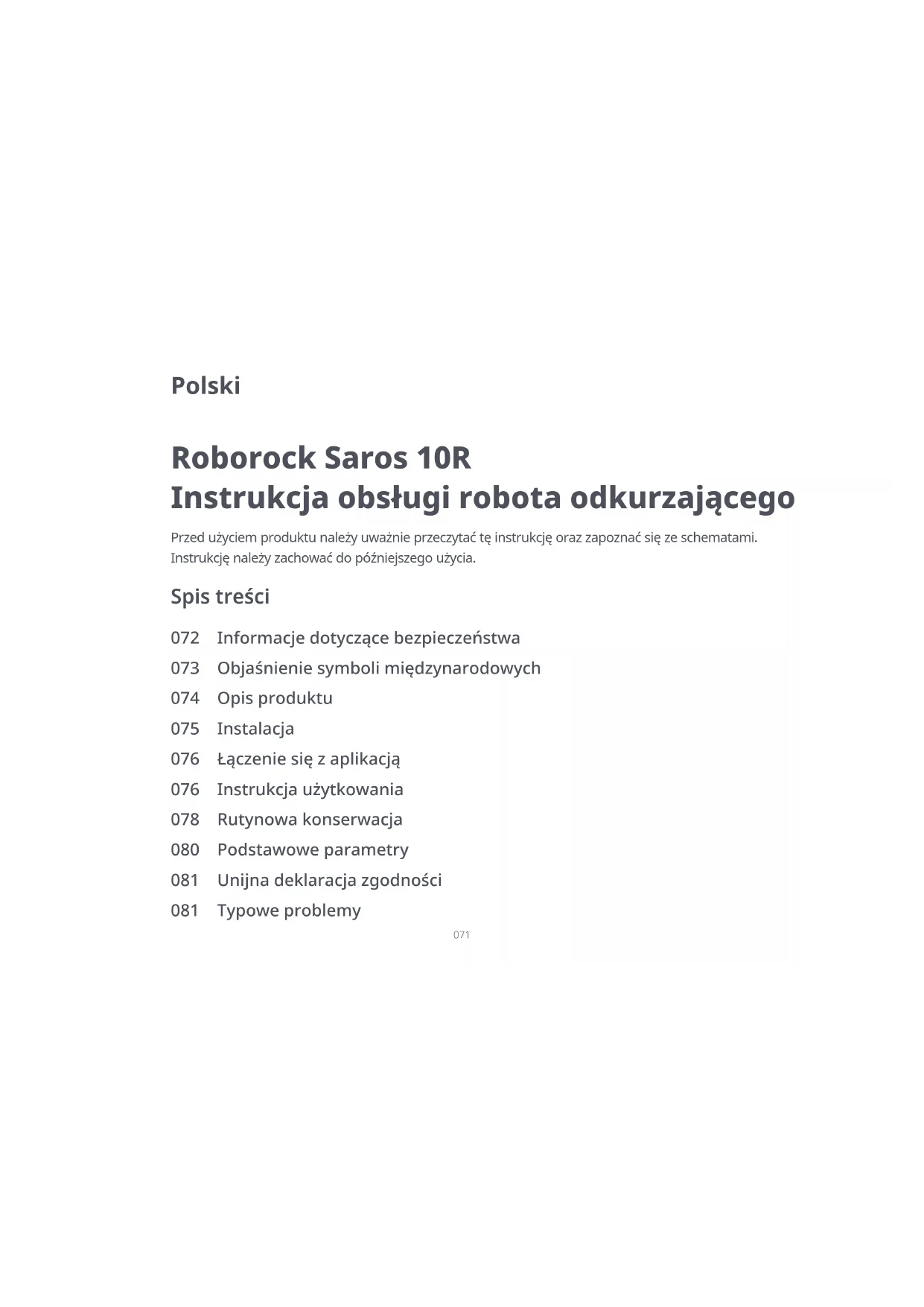 Saros 10R - Odkurzacz robot ROBOROCK - Bezpłatna instrukcja obsługi