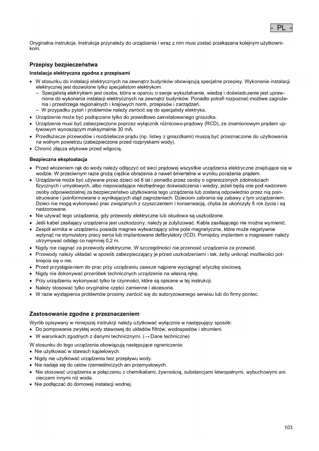 - PL - Oryginalna instrukcja. Instrukcja przynależy do urządzenia i wraz z nim musi zostać przekazana kolejnym użytkowni- kom. Przepisy bezpieczeństwa Instalacja elektryczna zgodna z przepisami