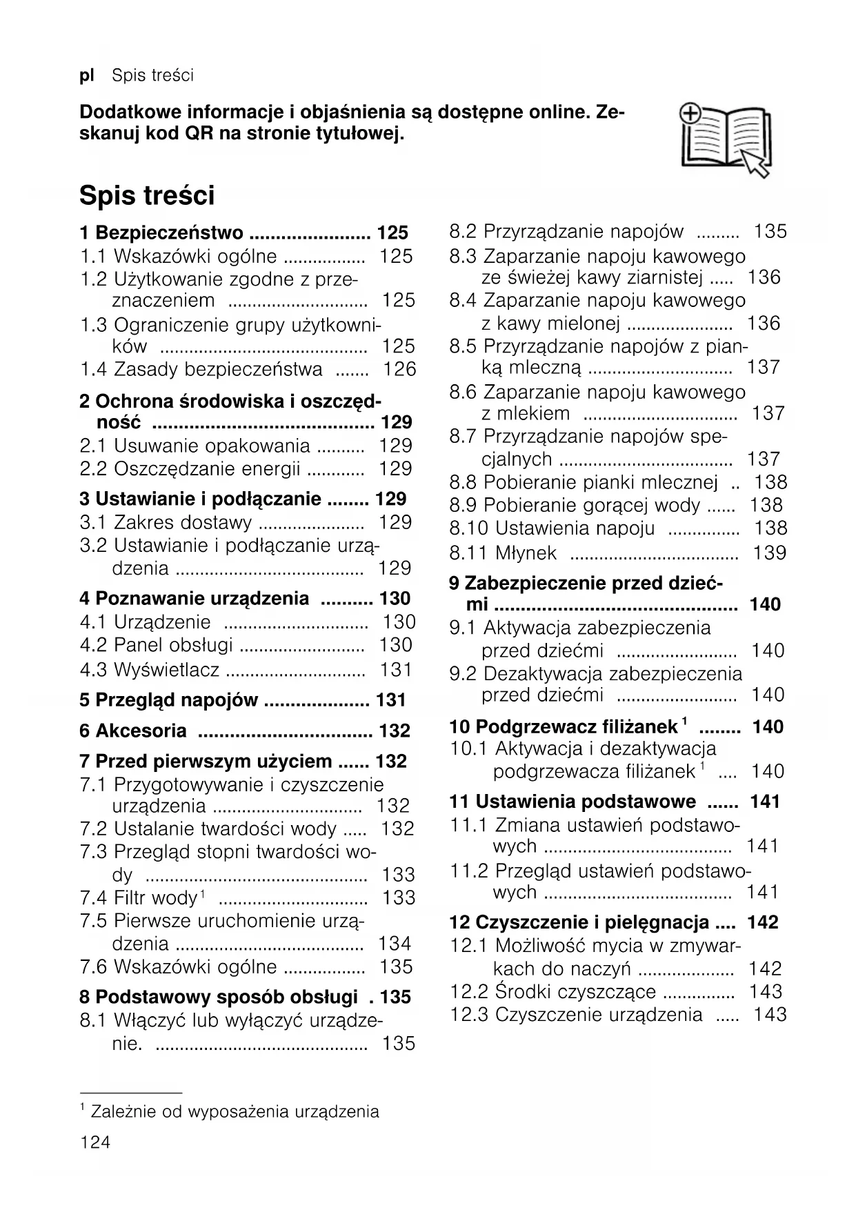 5 Przegląd napojów .................... 131 6 Akcesoria ................................. 132 7 Przed pierwszym użyciem ...... 132