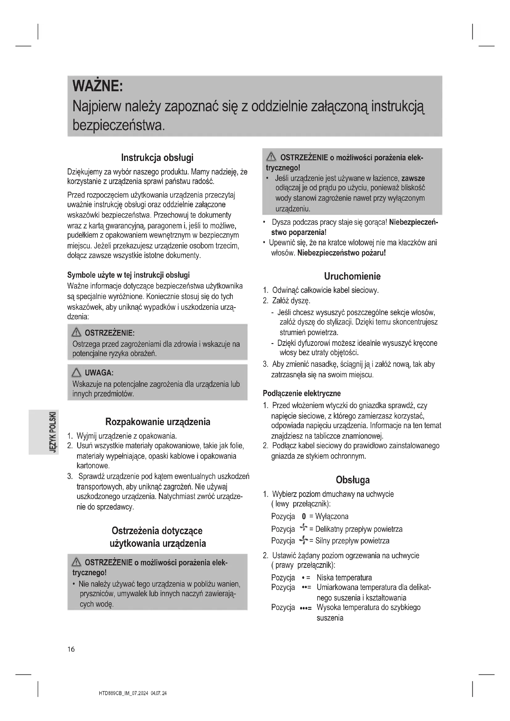 Wysoka temperatura do szybkiego suszeniaHTD889CB_IM_07.2024 04.07. 24
