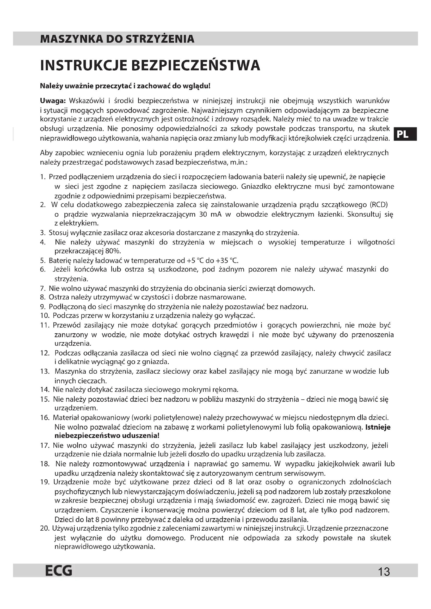 15. Nie należy pozostawiać dzieci bez nadzoru wpobliżu maszynki do strzyżenia – dzieci nie mogą bawić się
